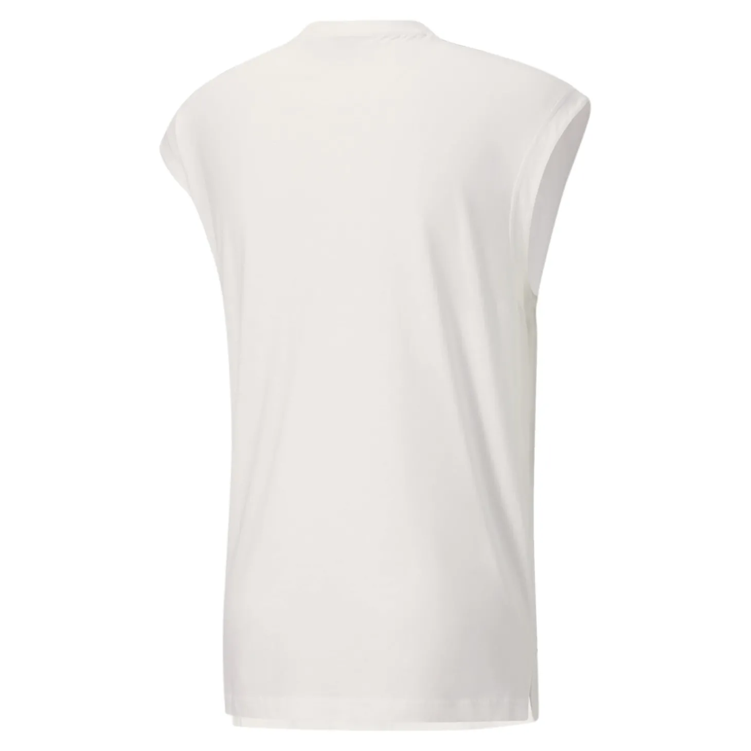 Descubre la versátil camiseta sin mangas de Puma, la ESS Sleev en blanco, perfecta para potenciar tu rendimiento en cualquier actividad deportiva.