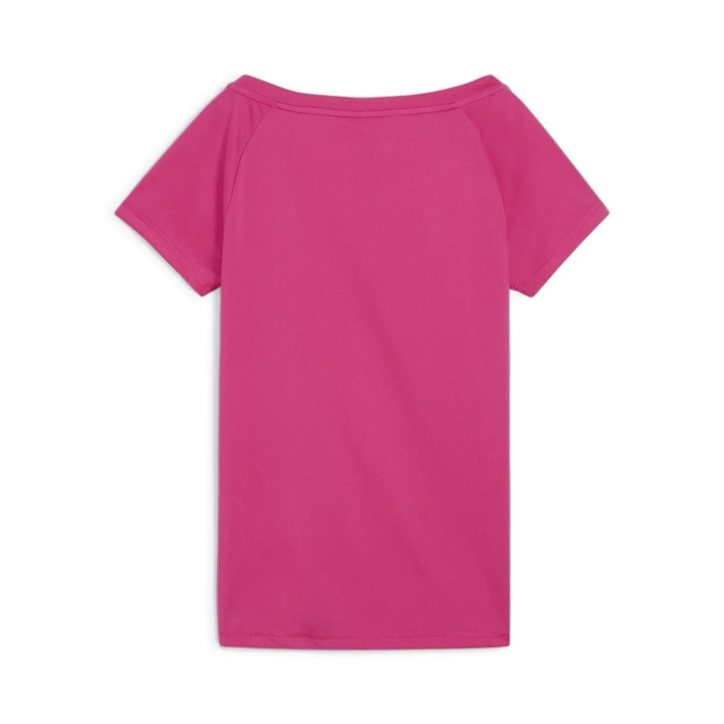 Camiseta de mujer de Puma en color rosa, la Train Fav, perfecta para hacer deporte tanto en interior como en exterior. Ha sido fabricada con materiales que facilitan el entrenamiento e incorpora la tecnología DryCell para un secado más rápido.