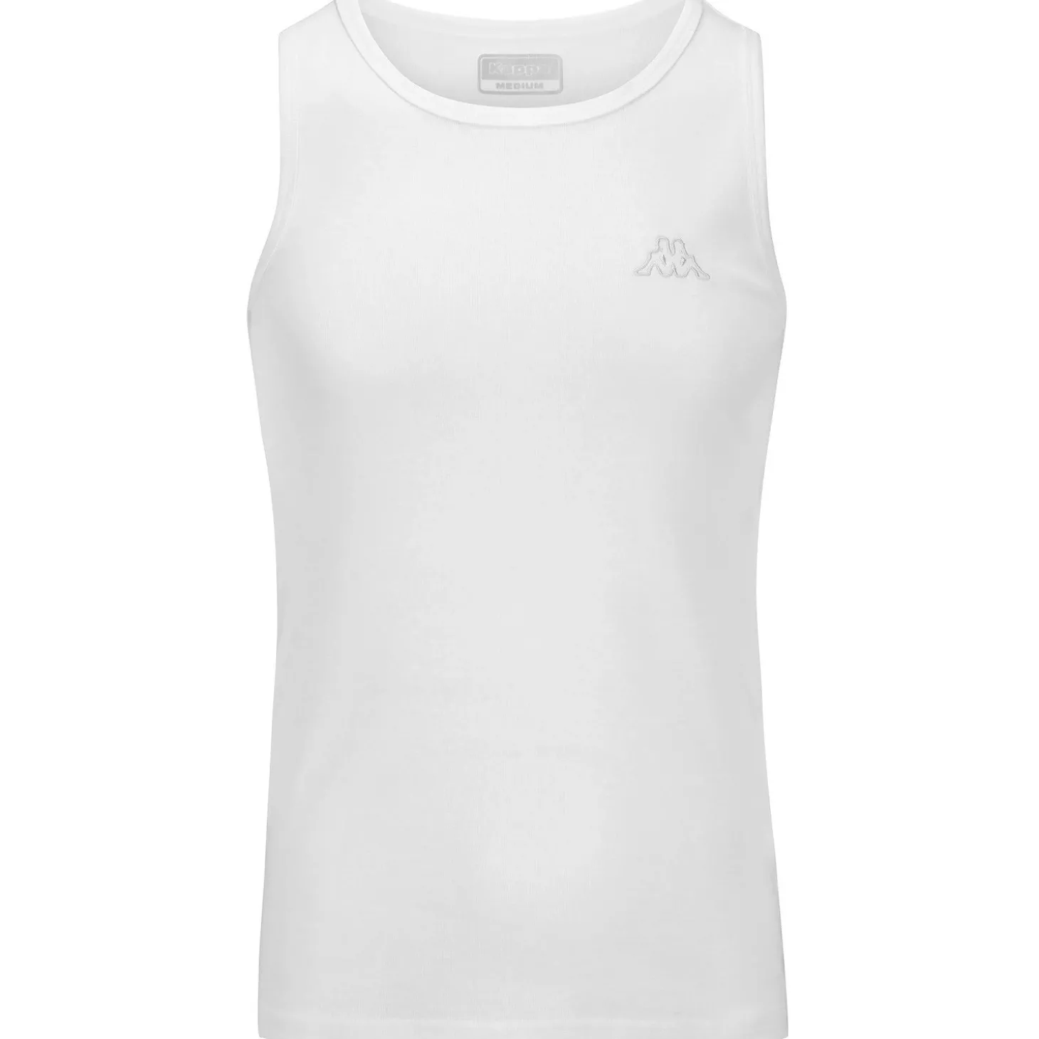 La camiseta sin mangas Carsenac de Kappa en color blanco es una prenda esencial para los amantes del deporte y del estilo urbano relajado.