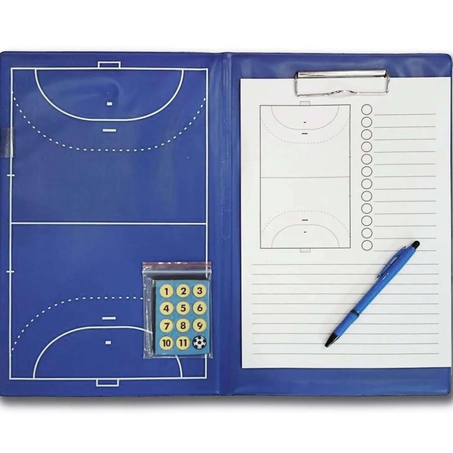 Carpeta de tácticas magnética BALONMANO / FUTBOL SALA. Uso profesional. con fichas magnéticas, soporte clip hojas, bloc de notas y soporte bolígrafo. Medidas 35.5×21.5 cm