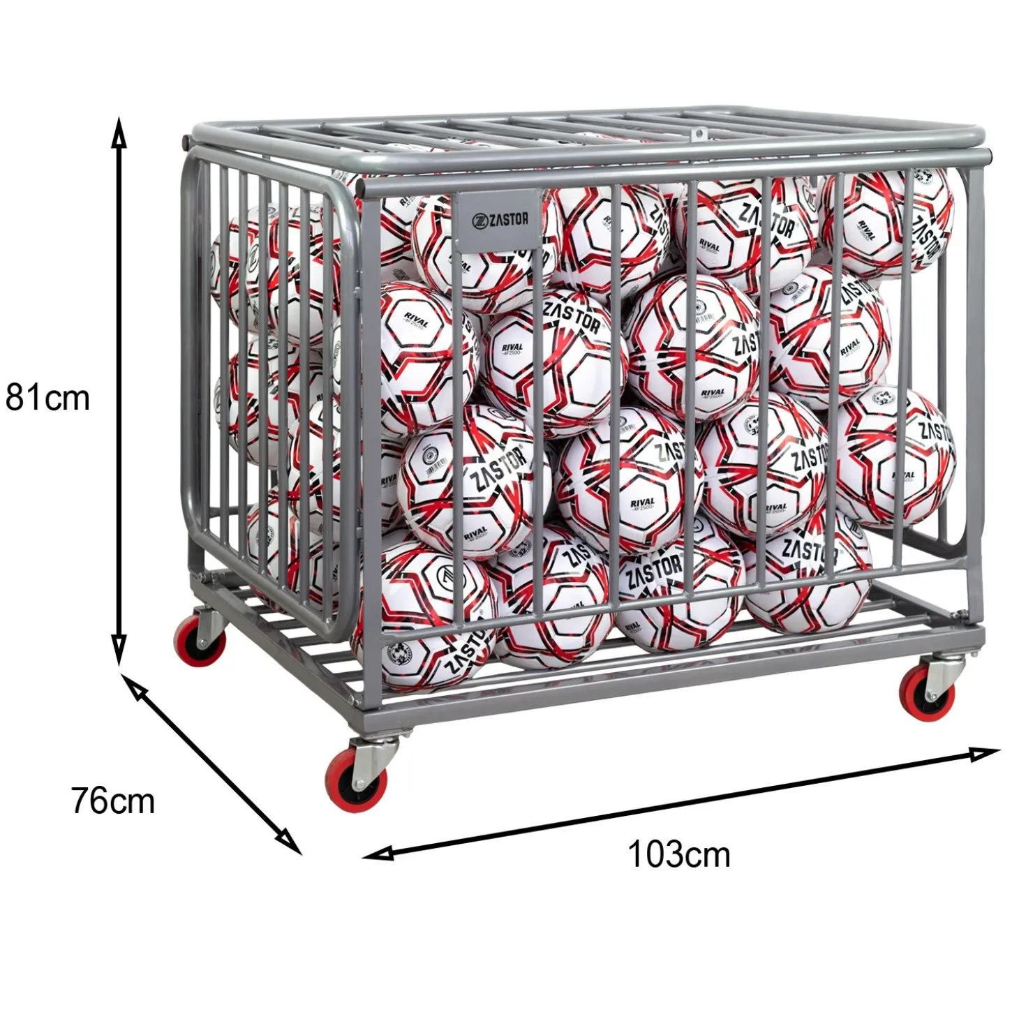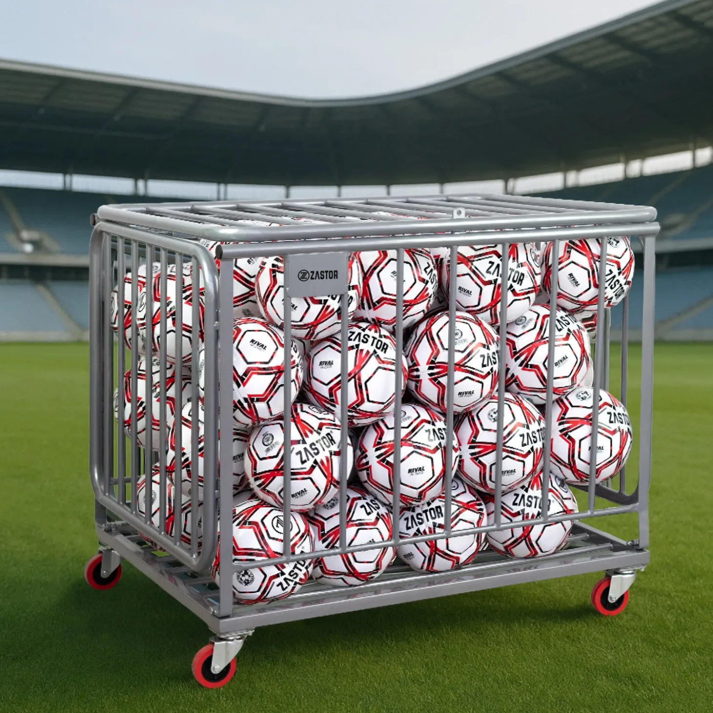 Hazte con este carro portabalones plegable de Zastor, modelo Berna, diseñado para clubes y centros deportivos que valoran la organización y la eficiencia, con capacidad para unos 60-70 balones.