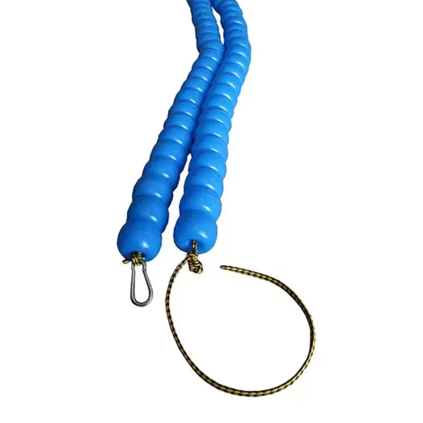 El sistema incluye una cuerda de poliéster de 8mm de grosor que conecta todos los donuts, garantizando resistencia y durabilidad incluso en piscinas de uso frecuente. Además, uno de los extremos incorpora un mosquetón que permite instalar y retirar la corchera de manera rápida y segura, facilitando su ajuste según la longitud de la piscina y el número de calles necesarias. Disponible en longitudes de 25m y 50m, esta corchera es ideal para piscinas escolares, clubes de natación o centros deportivos, proporcionando una solución práctica para separar calles de entrenamiento, competiciones o actividades recreativas. Su diseño robusto y sencillo asegura que los flotadores mantengan su posición y flotabilidad constante, evitando desplazamientos indeseados y garantizando la seguridad de los usuarios.