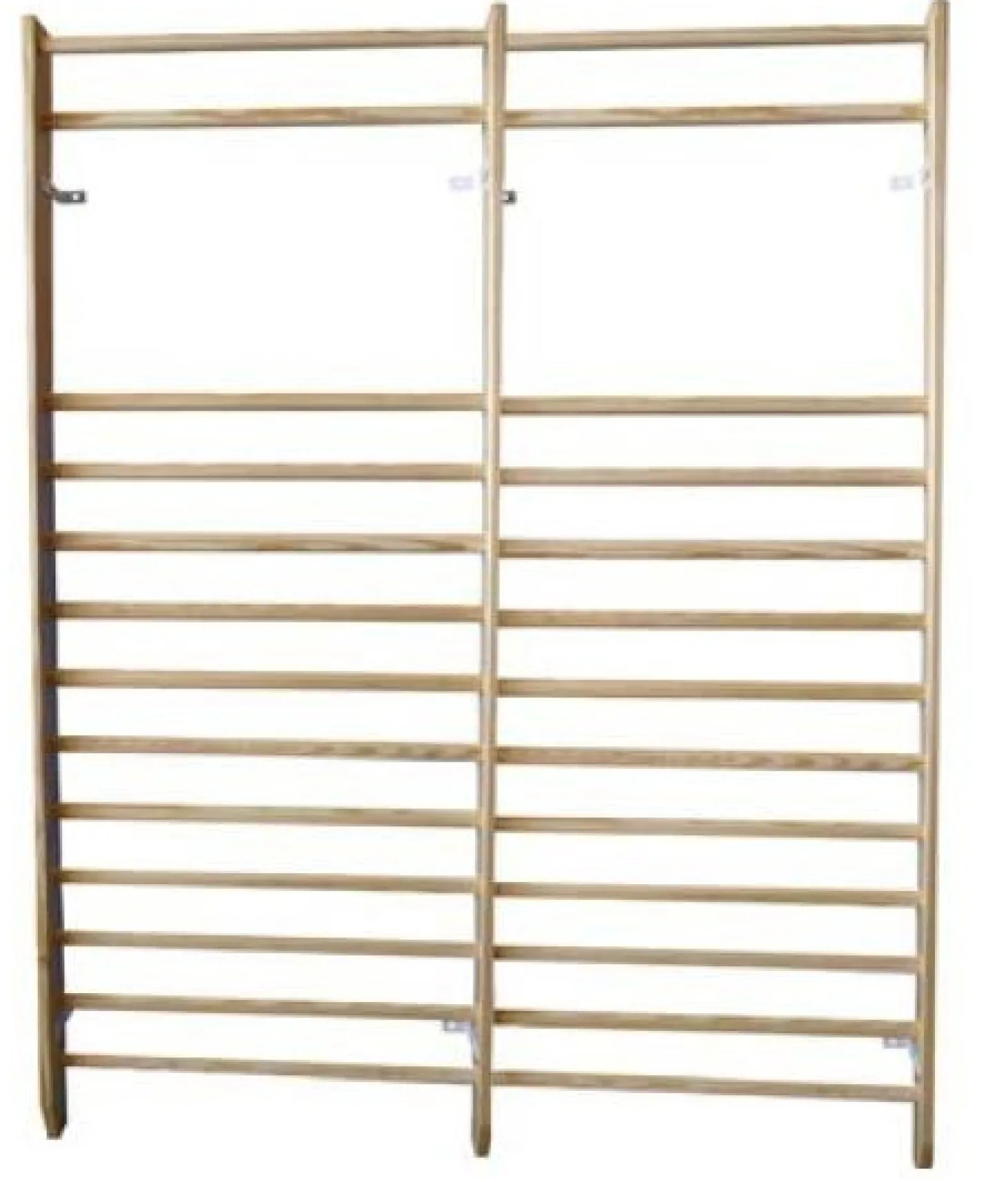 Espaldera de dos cuerpos fabricada íntegramente en madera de pino melis con travesaños ovalados.