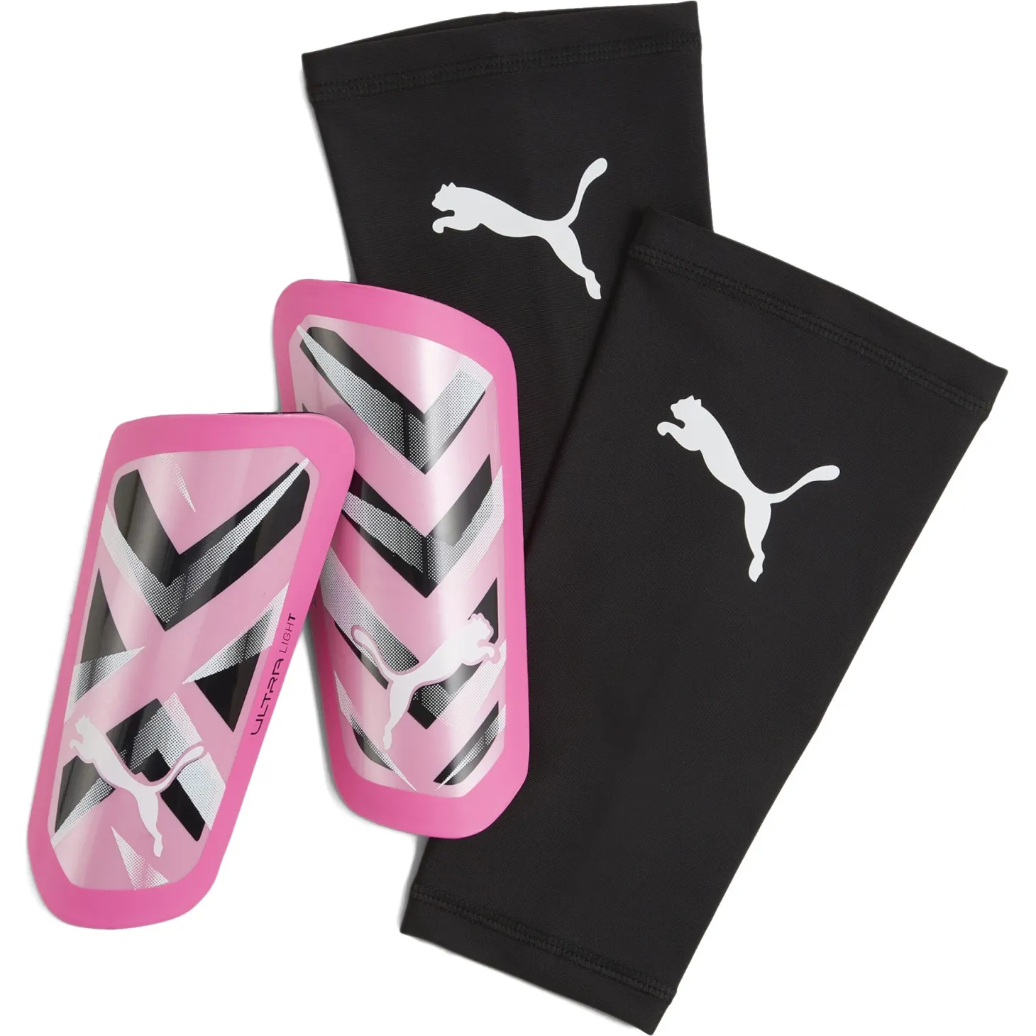 Las Ultra Light Sleeve de Puma son unas espinilleras de color rosa que te permitirán proteger tus piernas durante tus partidos de fútbol.