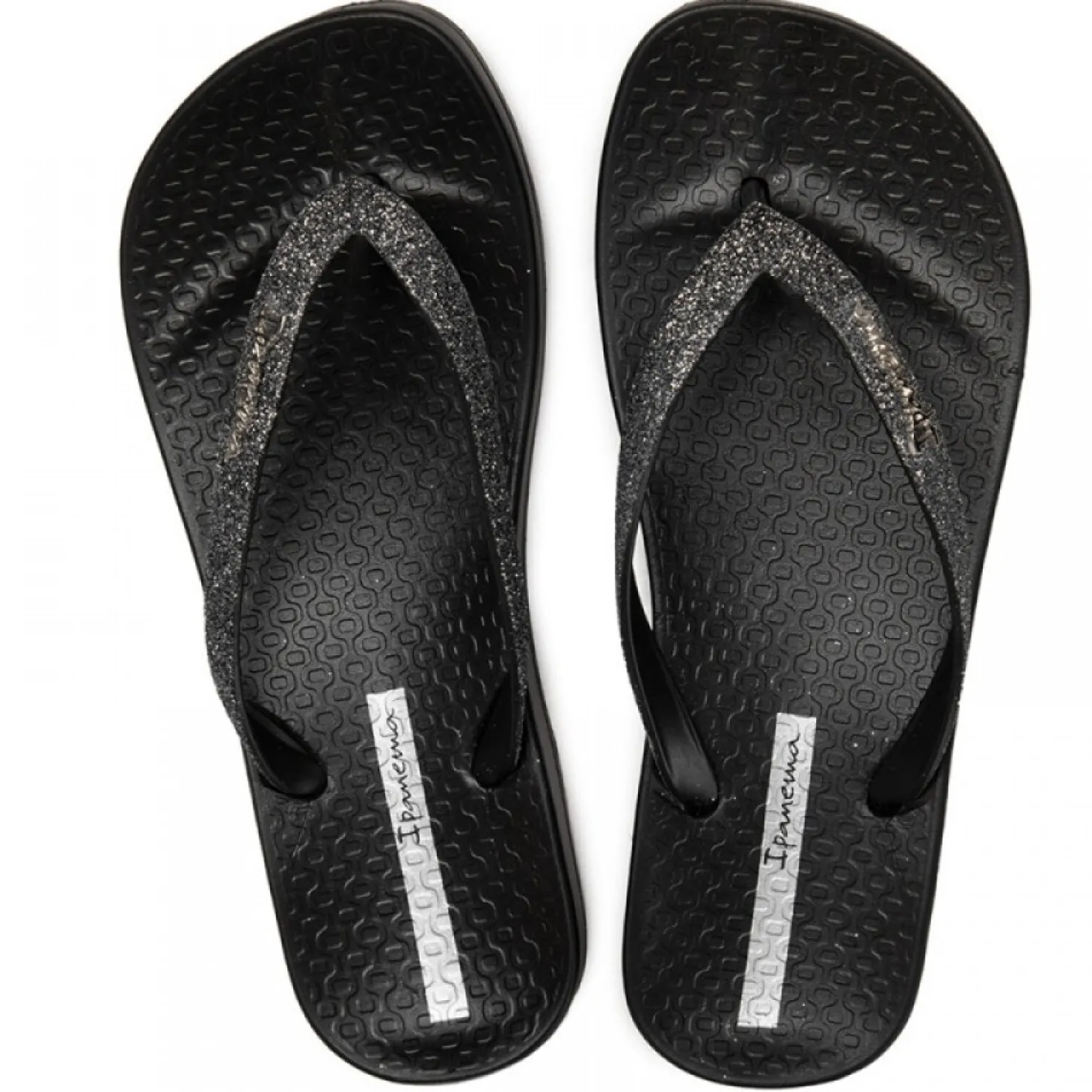 Esta nueva chancla de Ipanemra es fácil y cómoda de llevar gracias a su plantilla anatómica y a su composición en PVC reciclable. Además, tiene un diseño elegante en negro con las tiras en color plata brillante. Tiene una suela en relieve para mejorar el agarre.