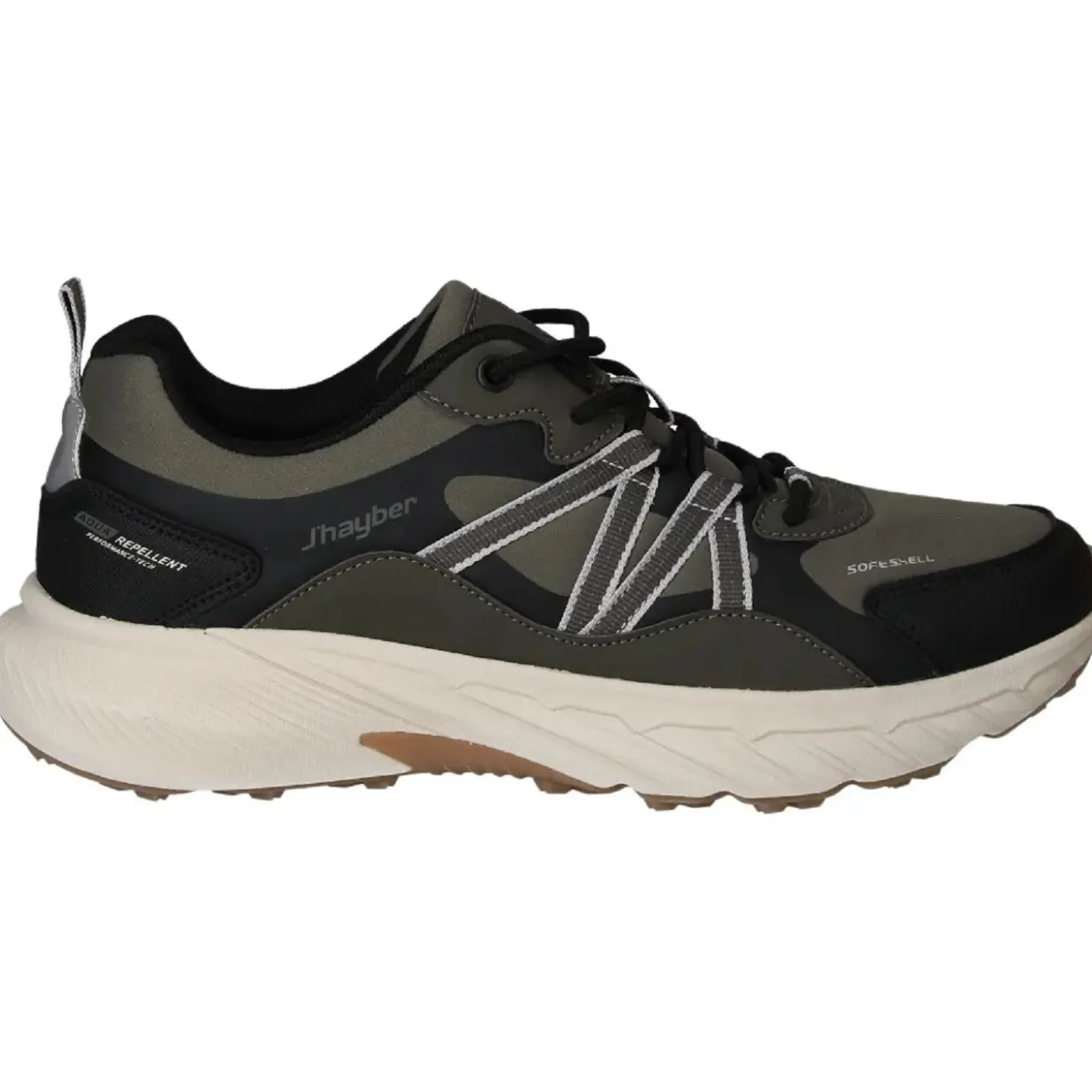 Diseñadas para quienes buscan una zapatilla versátil que soporte rutas, paseos o uso diario, las J’Hayber Chantar Kaki destacan por su construcción funcional y tono sobrio en kaki. Están fabricadas con material tipo softshell y cuentan con acabado “Aqua Repellent” que repele el agua y evita que la humedad penetre en el interior del calzado.