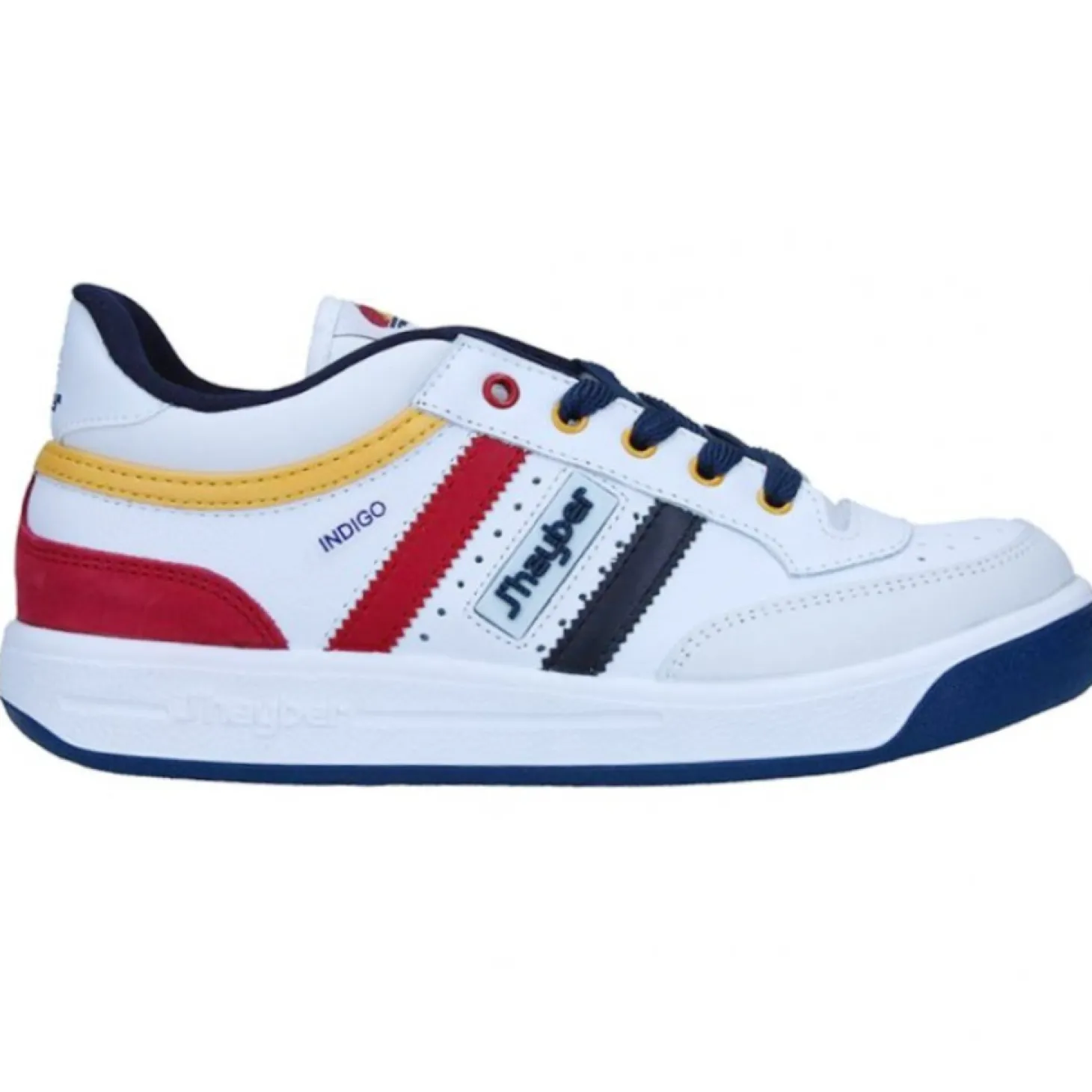 El modelo Índigo de J’Hayber se caracteriza por tener una suela de menor espesor, fabricada con pieles Premium en piel nobuck y suela de poliuretano inyectado para tener una mejor adherencia. Las zapatillas Origen 1972 evoca al origen de la marca con los colores de la mítica antorcha del logo de J’Hayber en color en colores en azul, rojo y amarillo. Un diseño muy especial para celebrar el 50 aniversario de la marca con una edición limitada que no puedes perderte.