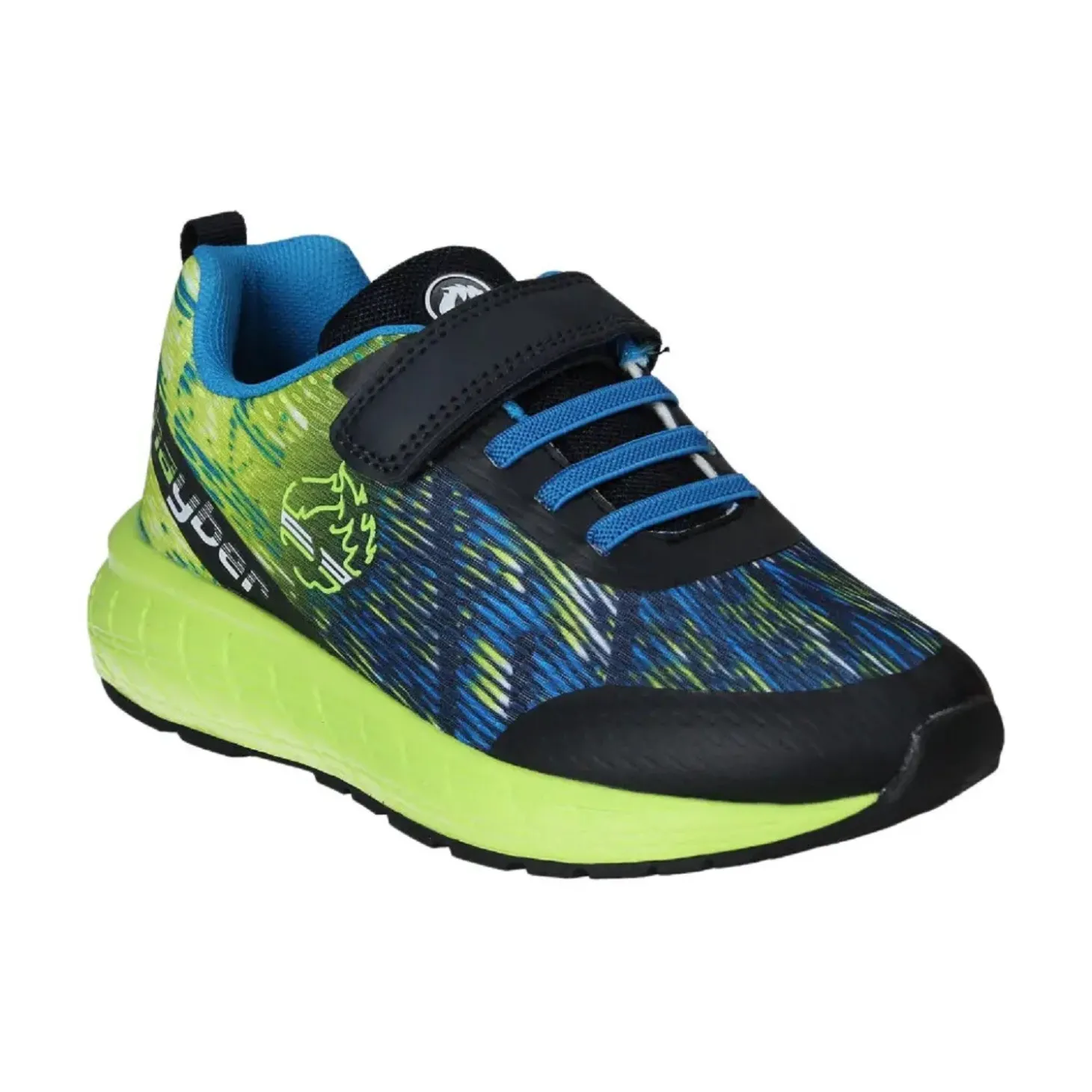 Con un estilo vibrante en azul marino, estas zapatillas ofrecen confort, soporte y dinamismo para los más activos. El ajuste por velcro permite que sean fácilmente puestas por el niño, y los cordones elásticos aportan firmeza sin complicaciones. Los detalles en lima y estampados hacen que destacan visualmente, mientras la suela de goma asegura tracción en juegos o desplazamientos rápidos. Una opción completa para combinar estilo y funcionalidad.