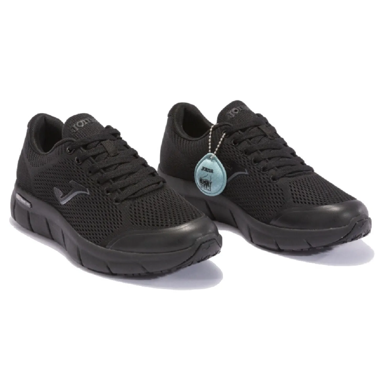 Zapatillas de Joma en color negro que te permitirán caminar cómodamente en todo momento ya que, entre sus puntos fuertes, destacan la comodidad, la ligereza y la amortiguación de los impactos. El upper de esta zapatilla es mesh transpirable que ofrece ligereza y transpirabilidad, al que se le ha añadido un sistema de perforaciones VTS que permite la evacuación del sudor y mantiene el pie fresco. Incorpora una nueva plantilla de Memory Foam elaborada con foam y base de EVA termoconformada para adaptarse totalmente a la pisada y suavizarla. La suela de caucho Durability con acabado antideslizante incorpora la tecnología Slip Resistant que reduce el riesgo de resbalones para caminar con total seguridad.