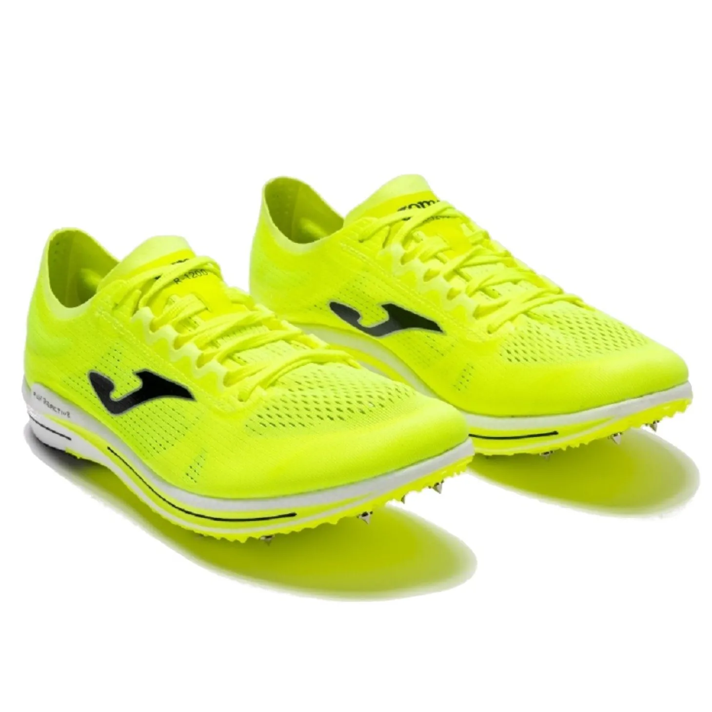 Zapatillas de clavos de running y atletismo de Joma, las R.R1200 Skypes 3-6-9mm en color amarillo flúor, perfecto para competición y pruebas de medio fondo.