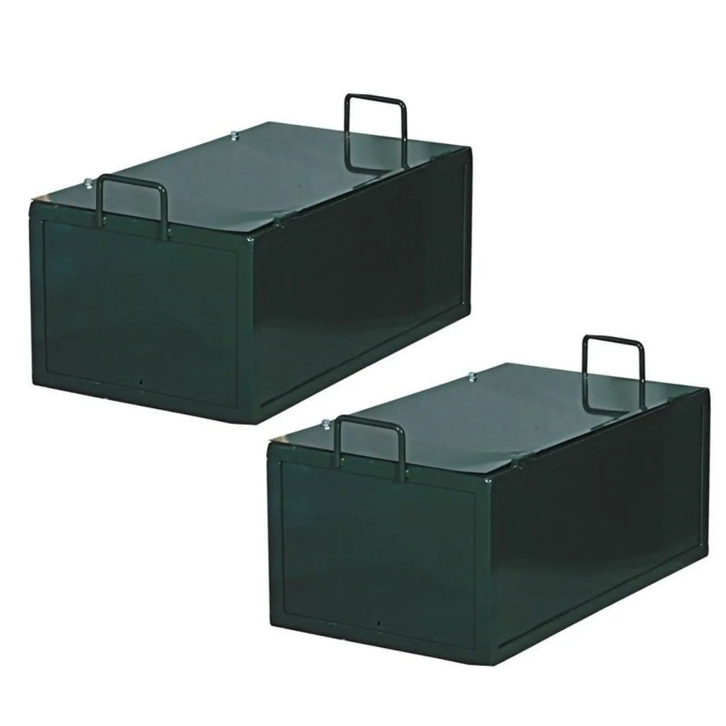 Juego de 2 cajones fabricados en chapa de acero de 1,5 mm laca con pintura poliéster, que incluyen 2 asas y tapa con cierre mediante doble tornillo.