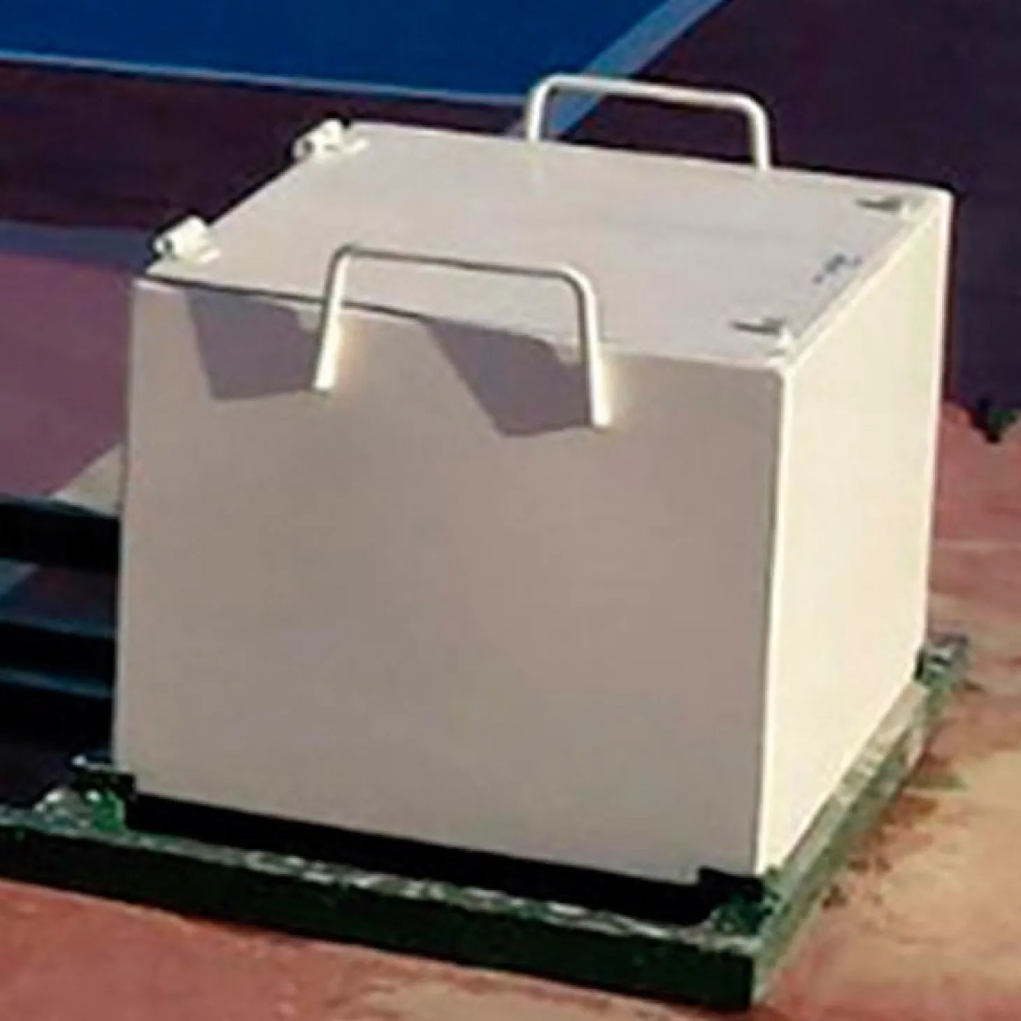 Los juegos de cajones de contrapeso se emplean para evitar el vuelco de los postes de tenis o voleibol o de las canastas de baloncesto o minibasket. Incluyen asa de transporte y tapadera. Tamaño pequeño.