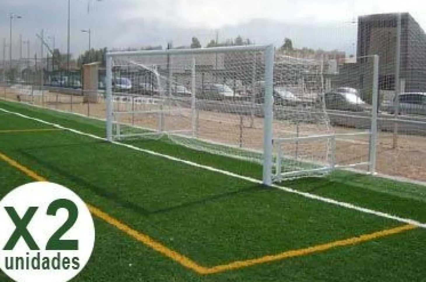 Juego de 2 porterías de fútbol 8 abatibles fabricadas en aluminio ovalado con sección de 120 x 100 mm.