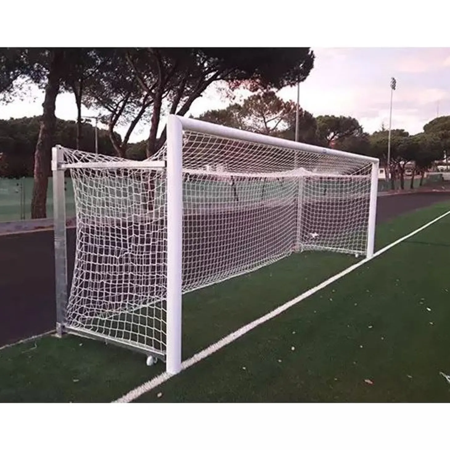 Porterías con dimensiones oficiales de acuerdo a la normativa FIFA de 6,00 x 2,00 m medida interior del marco.