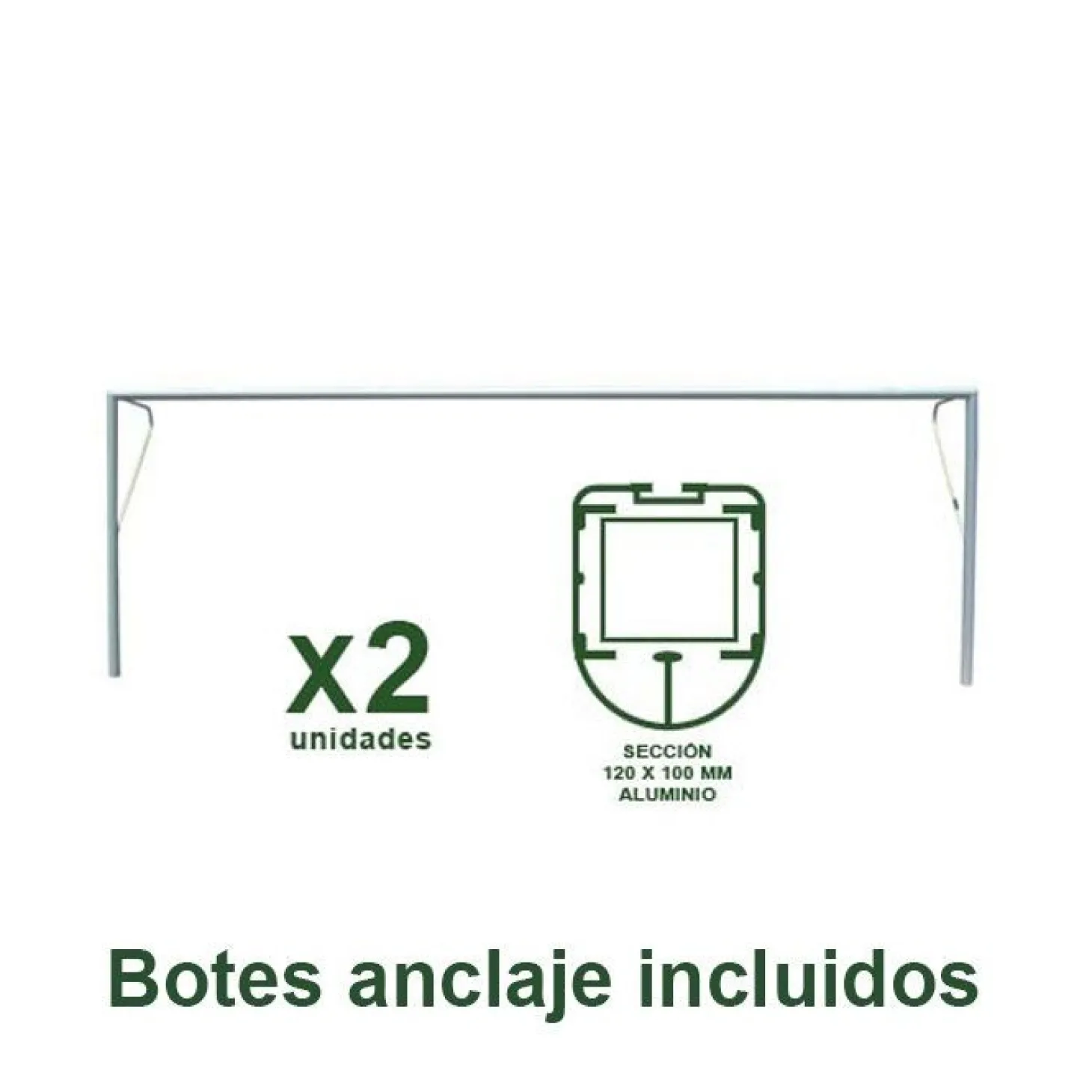 Juego de 2 porterías reglamentarias de fútbol 8 fijas fabricadas en aluminio oval 120 x 100 mm. Con botes de fijación incluidos.