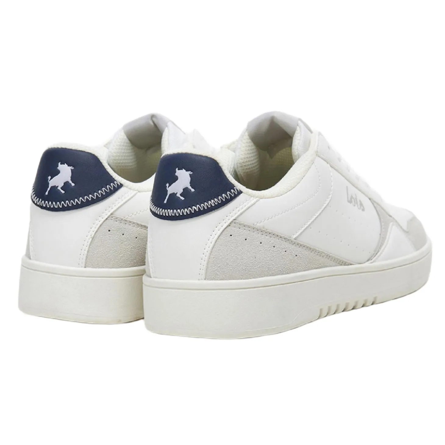Su exterior está fabricado en material sintético de alta calidad, con un acabado blanco limpio que se combina elegantemente con detalles en gris claro y azul marino, aportando un toque moderno sin perder sobriedad. En el interior, estas sneakers destacan por su comodidad superior gracias al acolchado del forro y del collarín, que protege el tobillo de roces y garantiza una sensación de suavidad durante todo el día. Además, cuentan con una plantilla foamizada, anatómica y transpirable que se adapta a la forma del pie, ofreciendo frescura y amortiguación incluso tras horas de uso continuado. El sistema de cierre con cordones permite un ajuste firme y personalizado, mientras que los ojales reforzados aseguran durabilidad y resistencia al desgaste. La suela está fabricada en goma termoplástica que proporciona estabilidad, amortiguación y un agarre antideslizante ideal para caminar sobre distintas superficies urbanas con total seguridad. Su puntera redondeada evita presiones incómodas en la parte delantera del pie, y las costuras bien rematadas refuerzan la estructura general de la zapatilla.