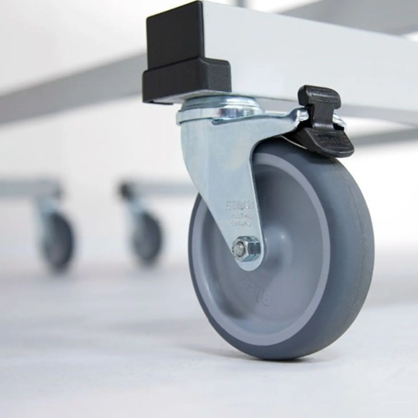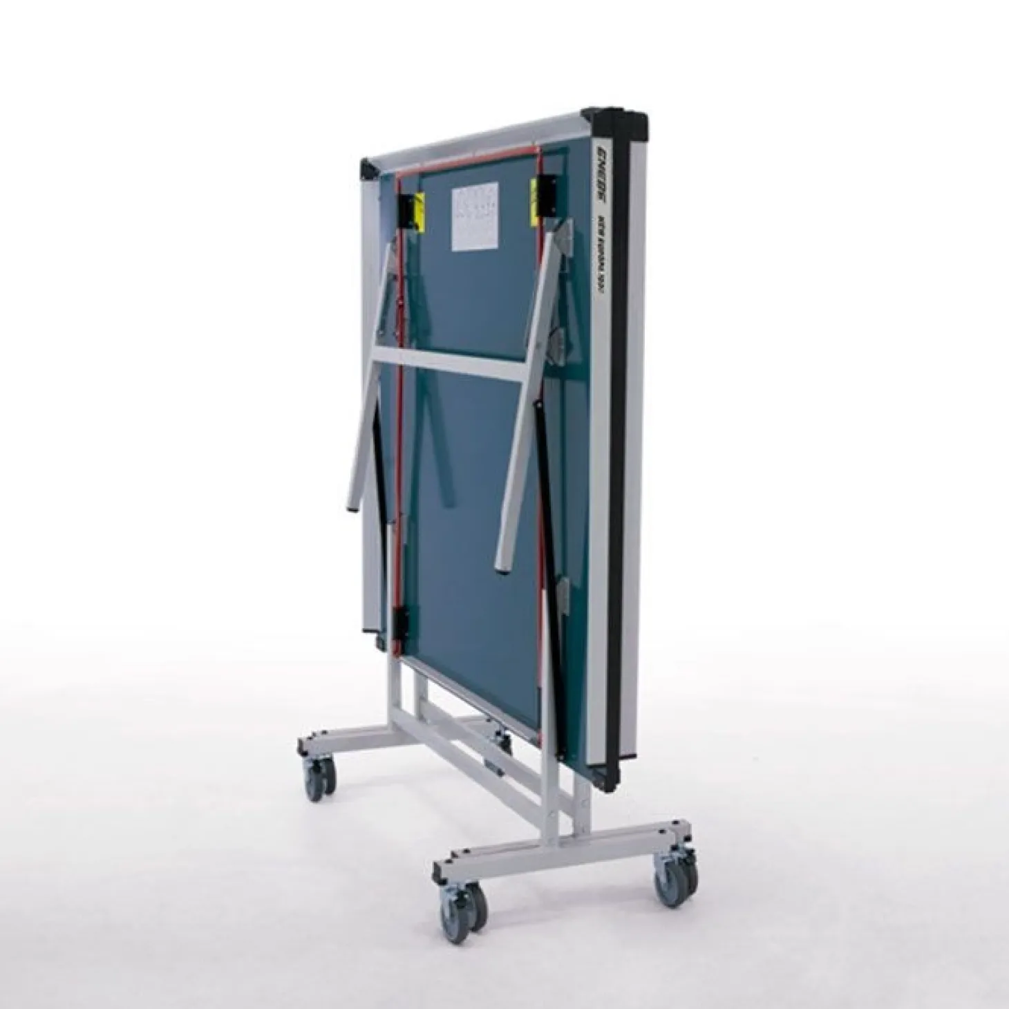 Para su transporte cómodo incorpora 8 ruedas, 4 de ellas en cada tablero, con un diámetro de 100mm, con banda de goma y realizadas con plástico duro. Cuenta con el sistema móvil roller, aplicado a los modelos de competición que permite desplazarla fácilmente. Las ruedas cuentan con sistema de freno (en dos de ellas) que evitan que la mesa se mueva durante el transcursos de los puntos.
