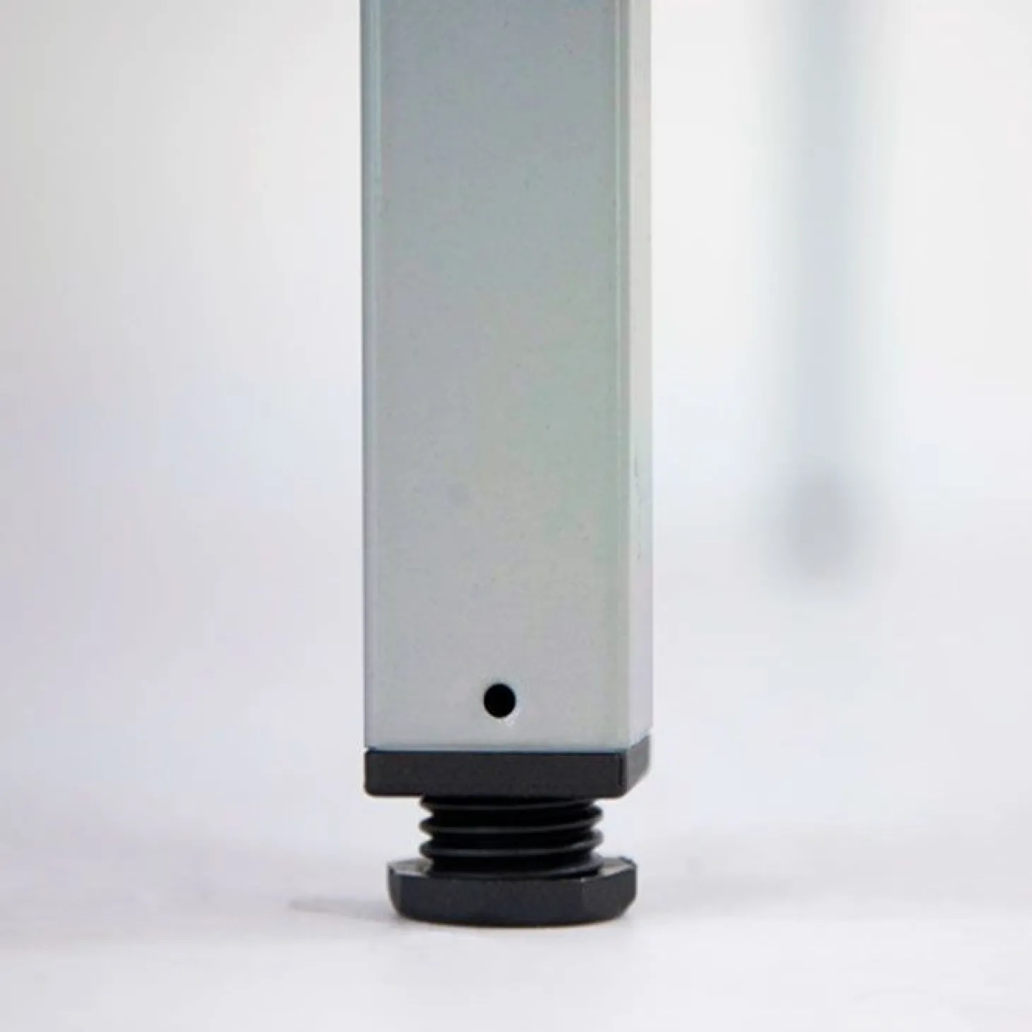 Sus patas metálicas son regulables, por lo que permiten colocar de manera equilibrada la mesa hasta en desniveles de 30mm con un ajuste de altura.