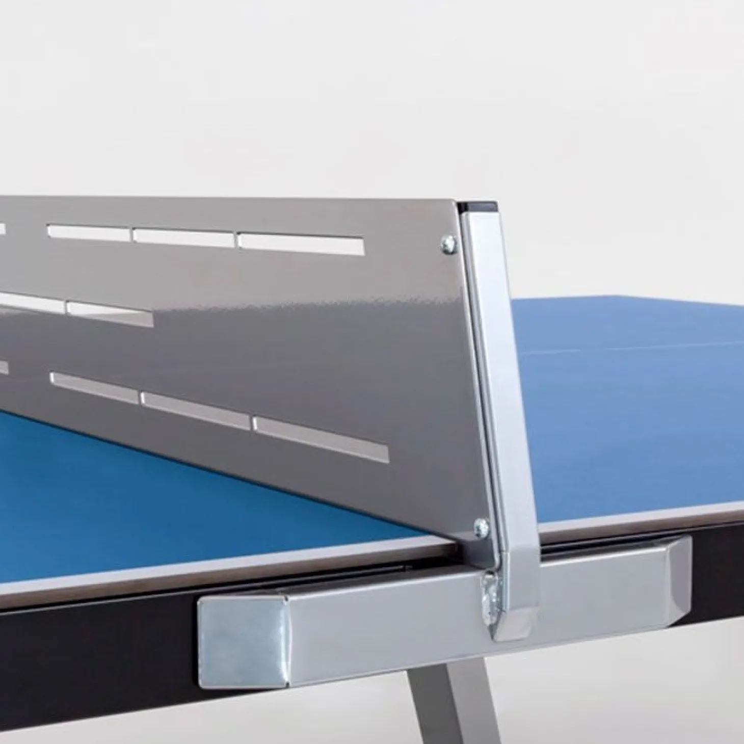 Esta mesa ping pong para exterior destaca por su gran robustez y estabilidad, gracias en gran parte a sus patas externas de 100x60mm realizadas en acero galvanizado. Además, cuenta con la posibilidad de poder anclarla al suelo con tornillos antirrobo. Esta mesa ping pong antivandálica es la mejor alternativa a las mesas de ping pong de hormigón.