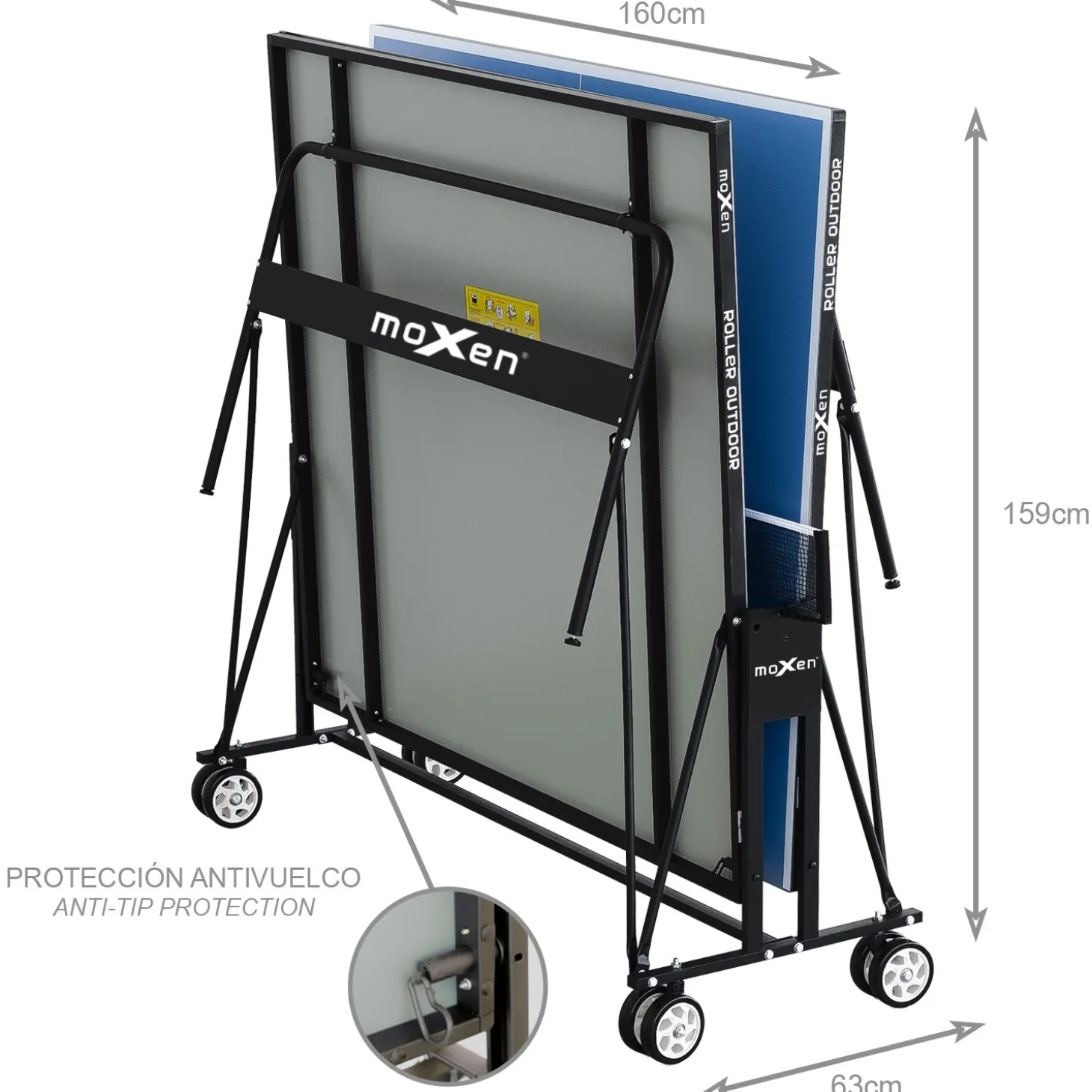 Características de Mesa Ping Pong Moxen Roller Outdoor