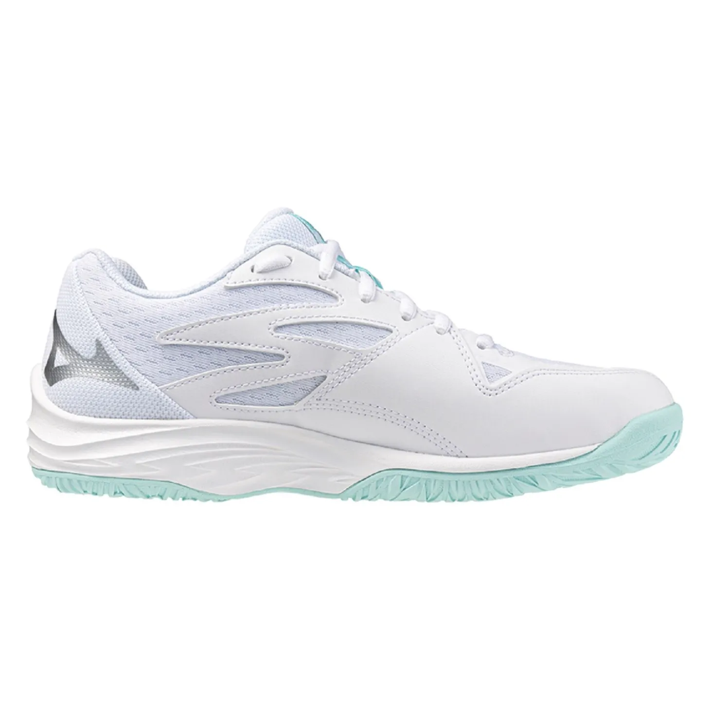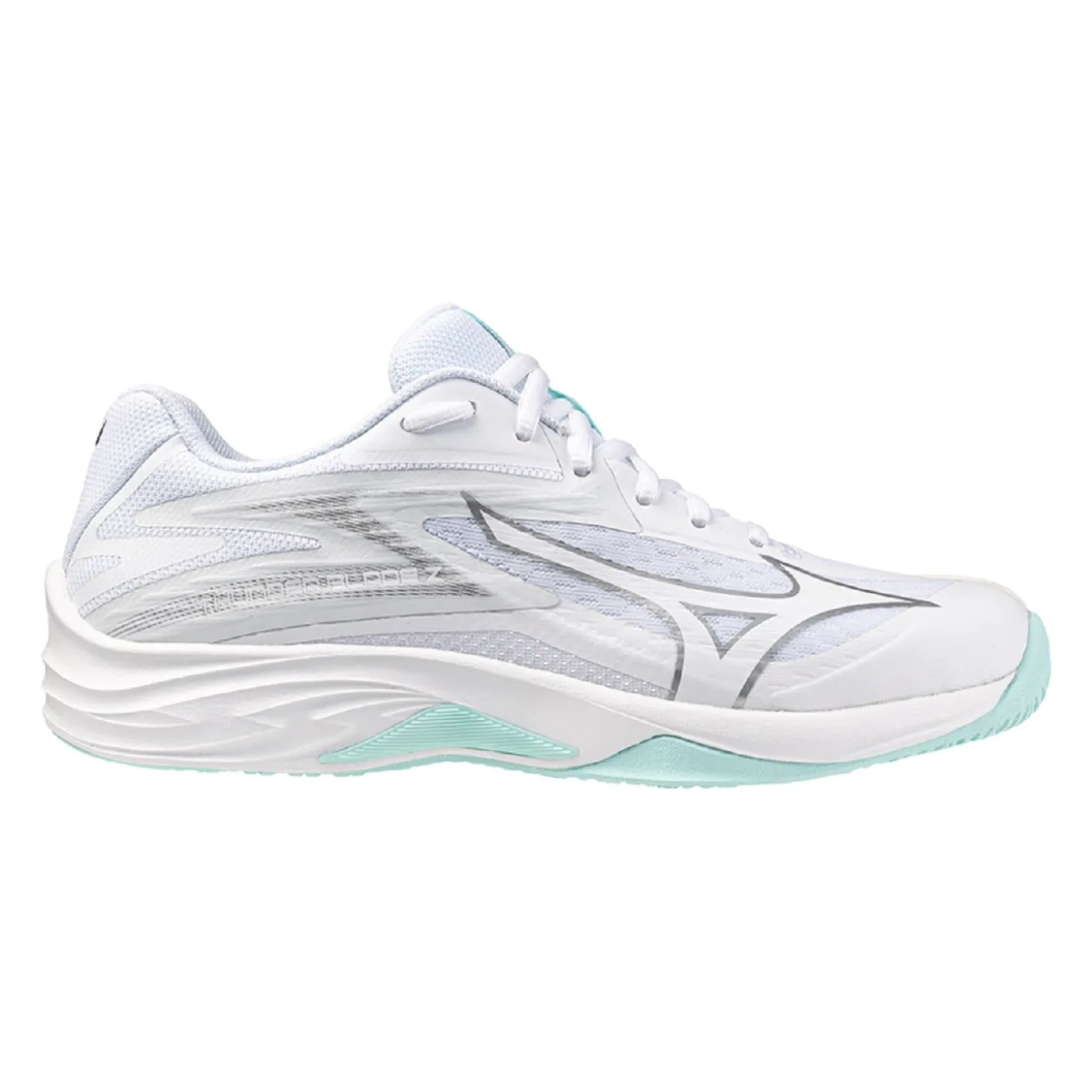 Las Mizuno Thunder Blade Z WOS en color blanco y turquesa son la elección ideal para jugadoras que buscan comodidad y eficiencia en la pista.
