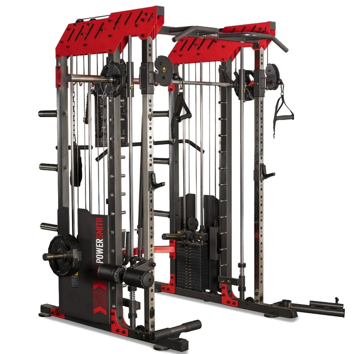 Rack Power Smith máquina multifunción con garantía semiprofesional que permite más de 40 ejercicios diferentes. Su sistema de carga combinada de placas y discos hará que el peso nunca se quede corto en tus entrenamientos de musculación.