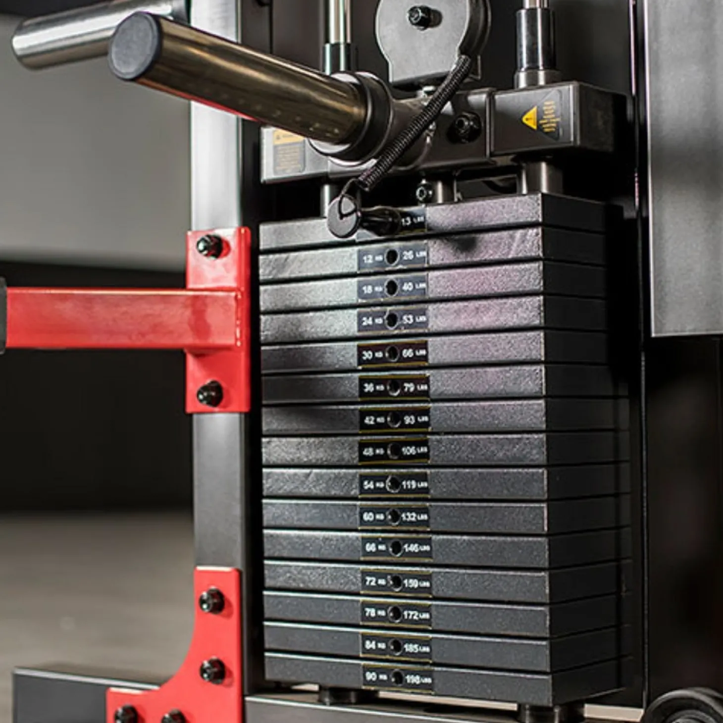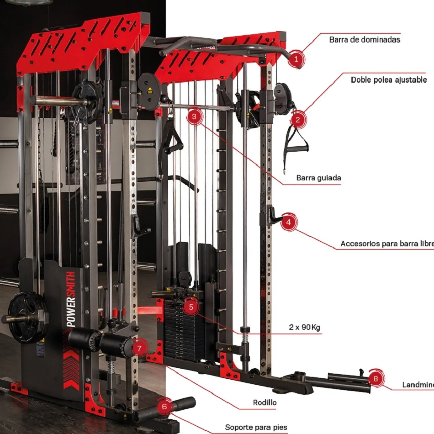 - Sistema de carga profesional: Entrene como en un gimnasio con su sistema de carga doble (90kg por columna), con selector magnetizado.