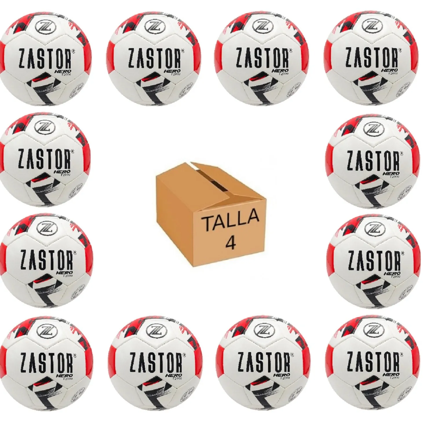 Comprar Pack 12 Balones Fútbol Zastor Hero 4F2000 Blanco/Rojo T-4