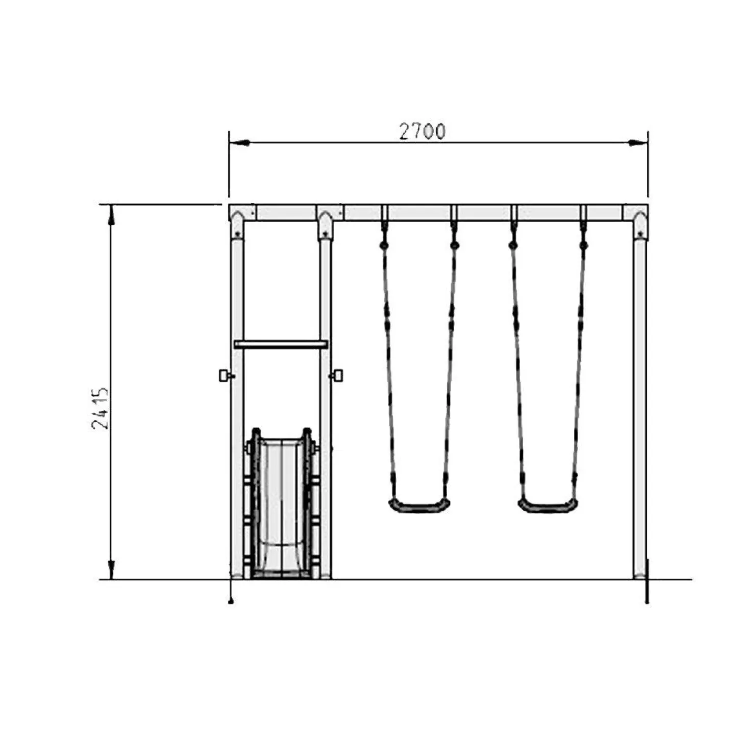 Disfruta ahora de tu nuevo columpio doble. Madera oscurecida para resistir mejor su instalación al aire libre, consiguiendo mayor calidad y durabilidad. El parque infantil Milos incluye dos asientos de plástico verde y cuerdas sintéticas, un juego de anclajes planos y toda la tornillería necesaria para su montaje. También un tobogán de plástico HDPE resistente a la corrosión.