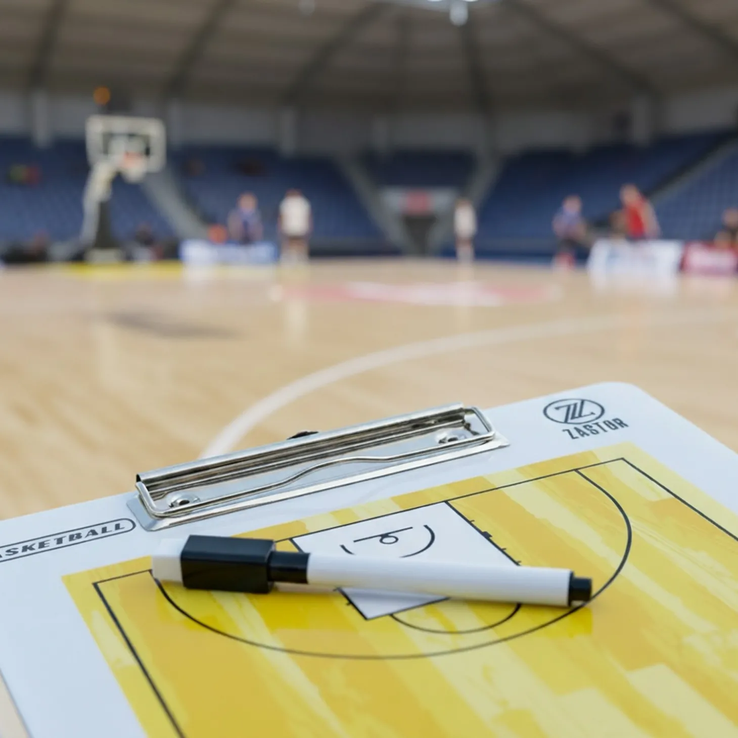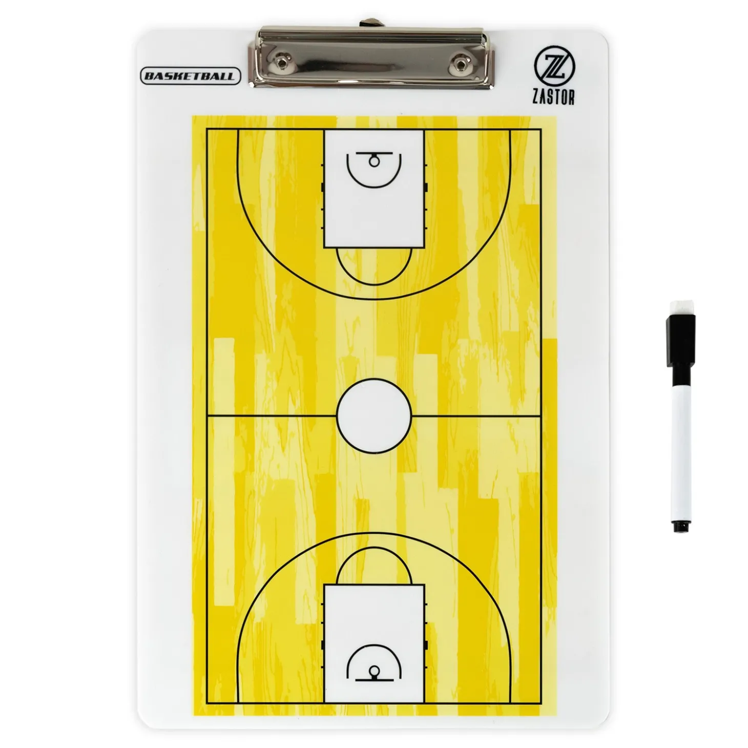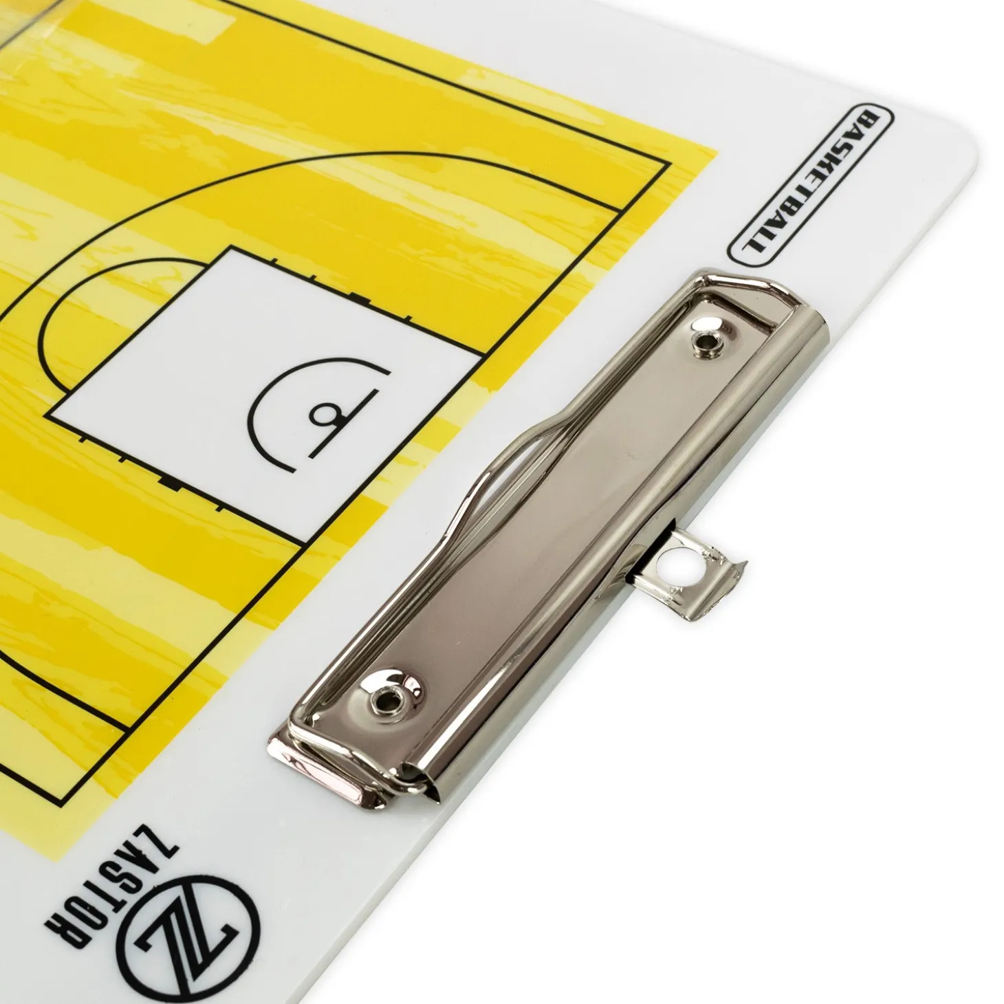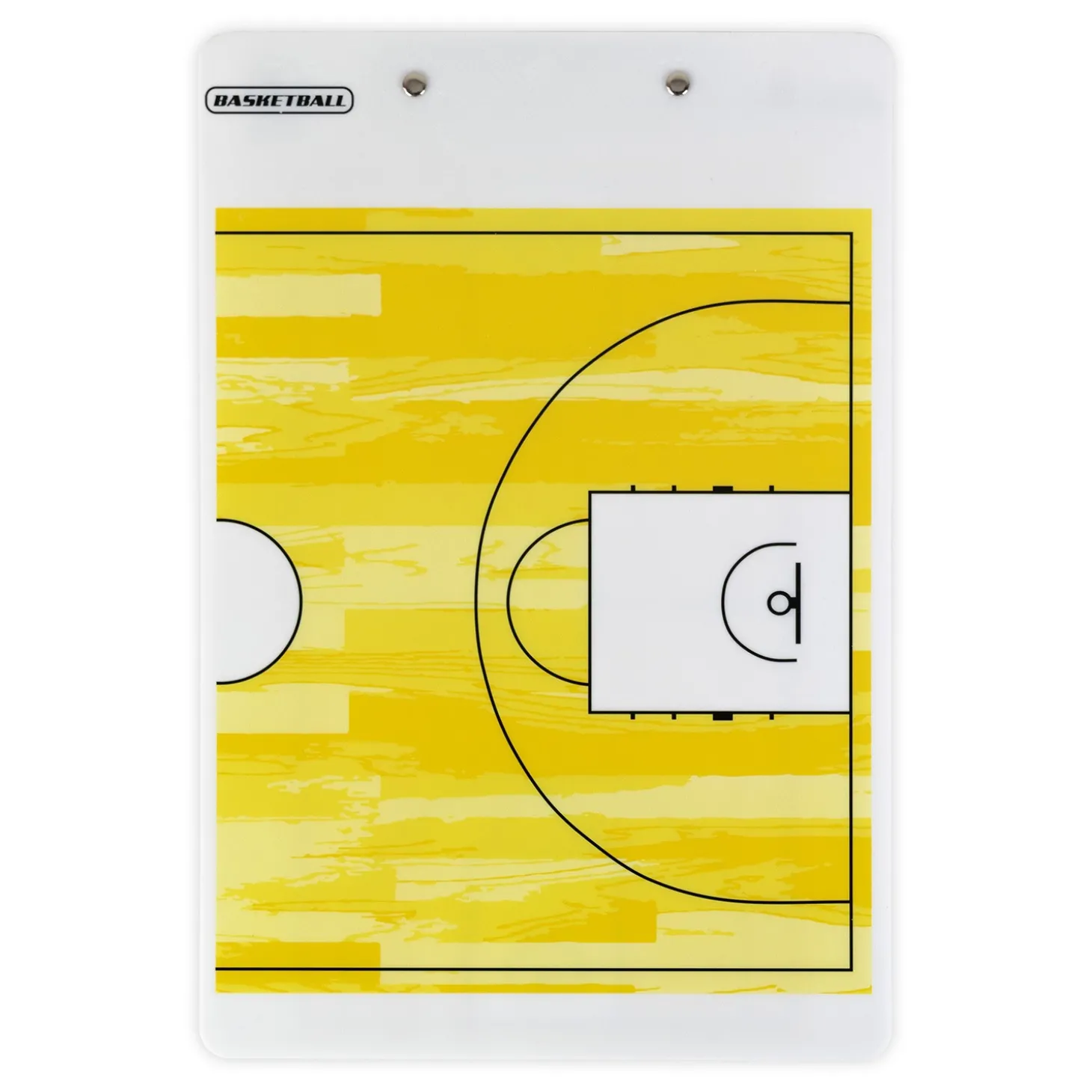 Pizarra tácticas de Baloncesto reversible con rotulador tipo Velleda y clip para bloc de notas.