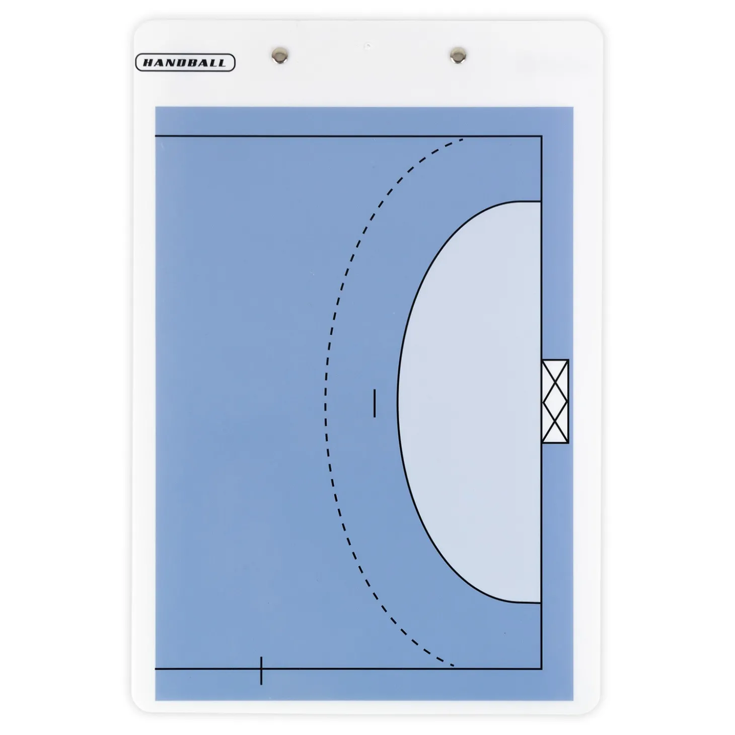 Pizarra tácticas de Fútbol-Sala y Balonmano reversible con rotulador tipo Velleda y clip para bloc de notas.
