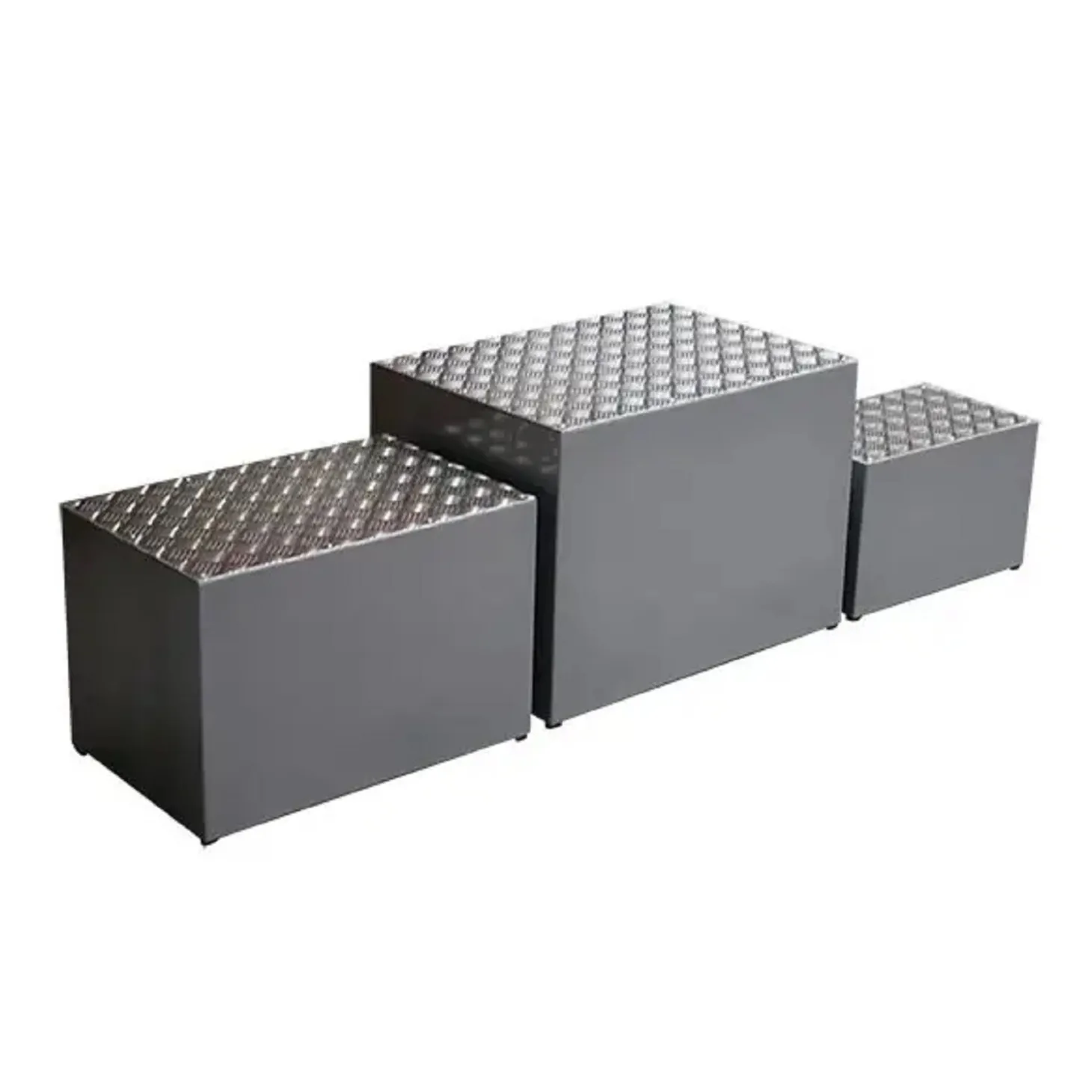 Pódium metálico de tres alturas, ideal para competiciones profesionales, eventos deportivos y entregas de premios, con estructura robusta, estable y totalmente personalizable.