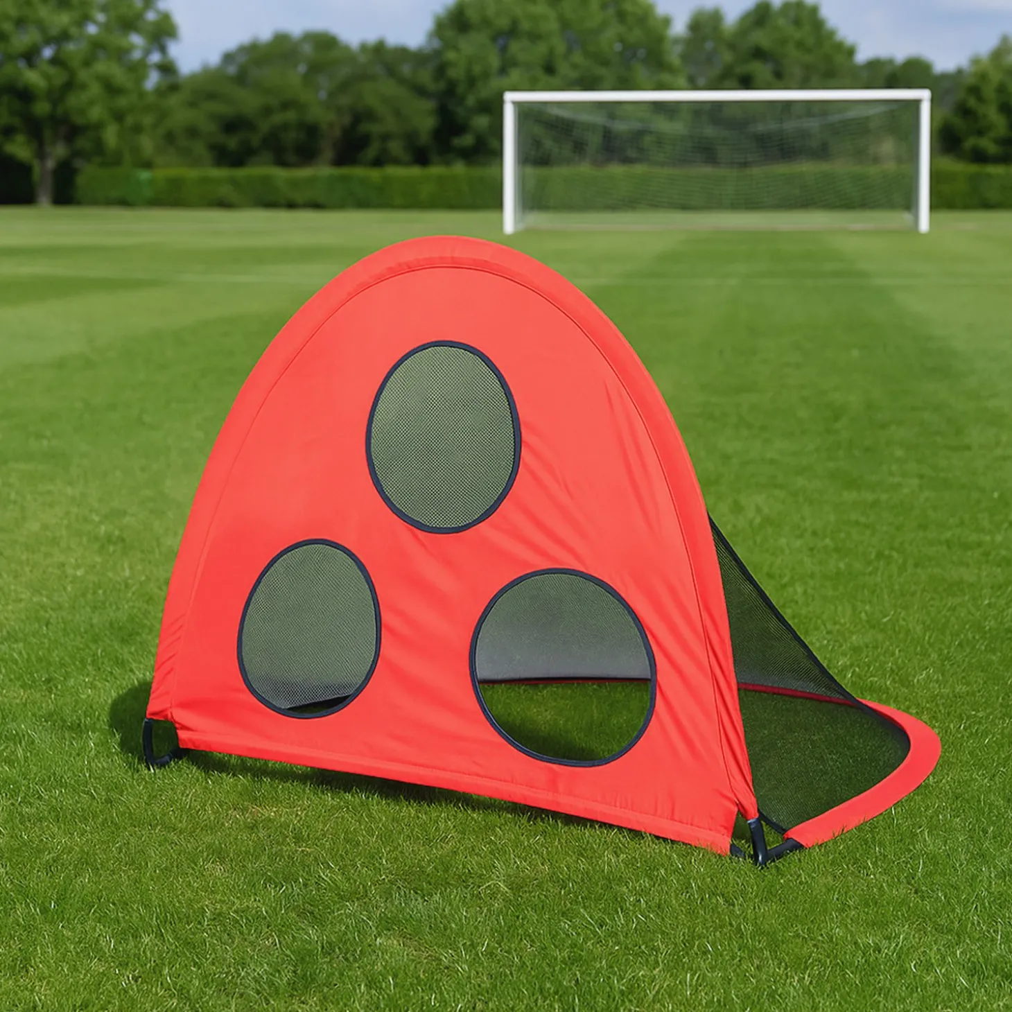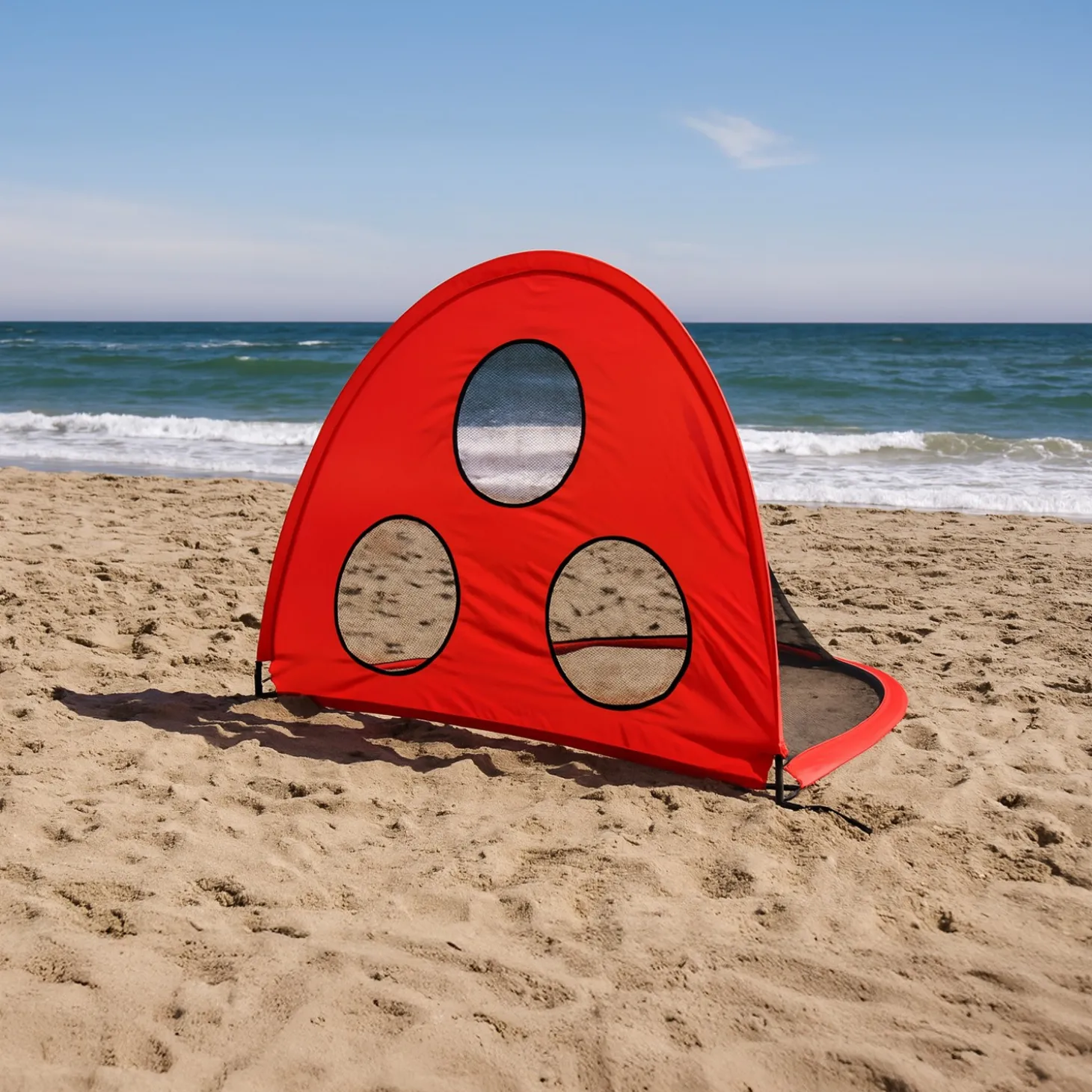 Con unas medidas de 153x110x110cm, esta portería portátil ofrece un tamaño ideal para jugar tanto en exteriores como en interiores amplios, adaptándose perfectamente a parques, jardines, patios o zonas deportivas. Fabricada en poliéster de alta calidad y con estructura de malla de red resistente, la Zastor Bool es ligera, duradera y muy fácil de montar. Su diseño plegable permite guardarla y transportarla cómodamente cuando no se está utilizando, ocupando muy poco espacio. Uno de sus grandes atractivos es su doble funcionalidad: en una cara se puede utilizar como portería convencional, ideal para partidos y juegos libres entre niños o en familia. Por el otro lado, incorpora tres orificios circulares especialmente diseñados para entrenar la puntería y la precisión en el disparo, ofreciendo un recurso divertido y efectivo para mejorar el tiro en condiciones reales de juego. Este sistema 2 en 1 la convierte en una herramienta muy versátil tanto para el entretenimiento de los más pequeños como para ejercicios de entrenamiento técnico en edades tempranas. Además, su montaje es rápido y no requiere herramientas, lo que facilita su uso en cualquier momento. Incluye bolsa de transporte, lo que la hace aún más cómoda para llevarla a donde haga falta.
