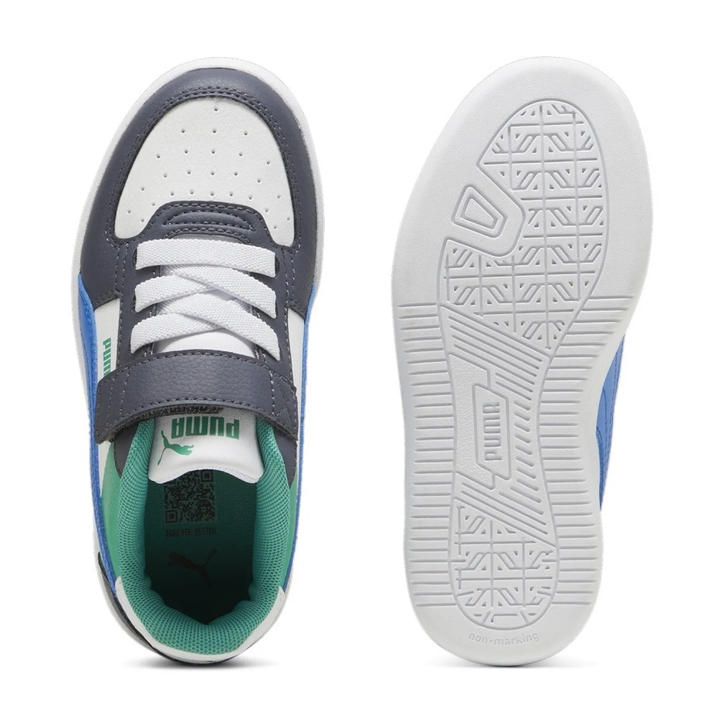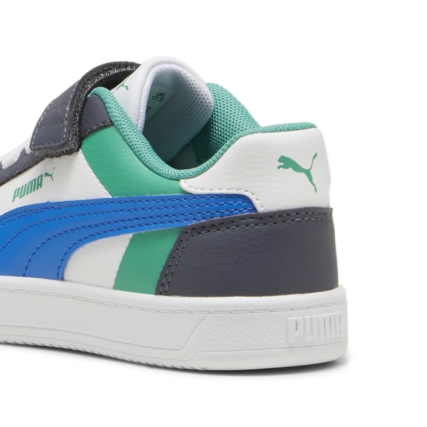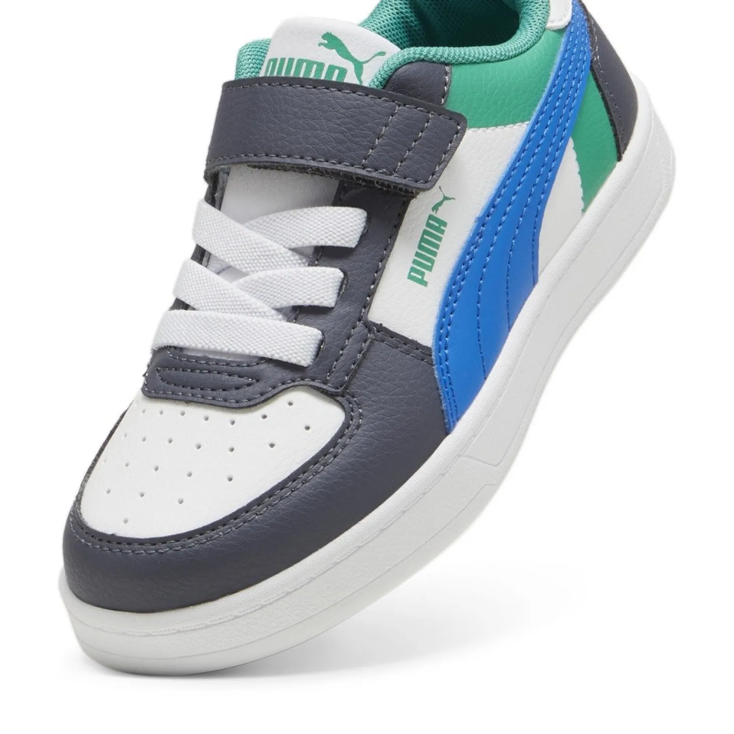 Llévate estas cómodas y prácticas zapatillas de Puma para tus hijos, las Caven 2.0 Block AC+PS en color blanco, azul y verde.