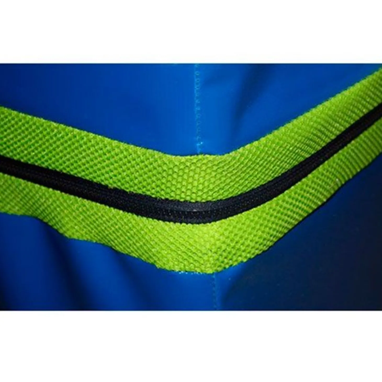 Quitamiedos tamaño 300x200cm plegable por la mitad, fabricado con lona ignífuga reforzada y de alta resistencia que permite la salida del aire. Interior relleno de espuma de poliuretano de 25kg/m³ de densidad. Incorpora cremallera para la fácil sustitucion de la cubierta de lona ignífuga.