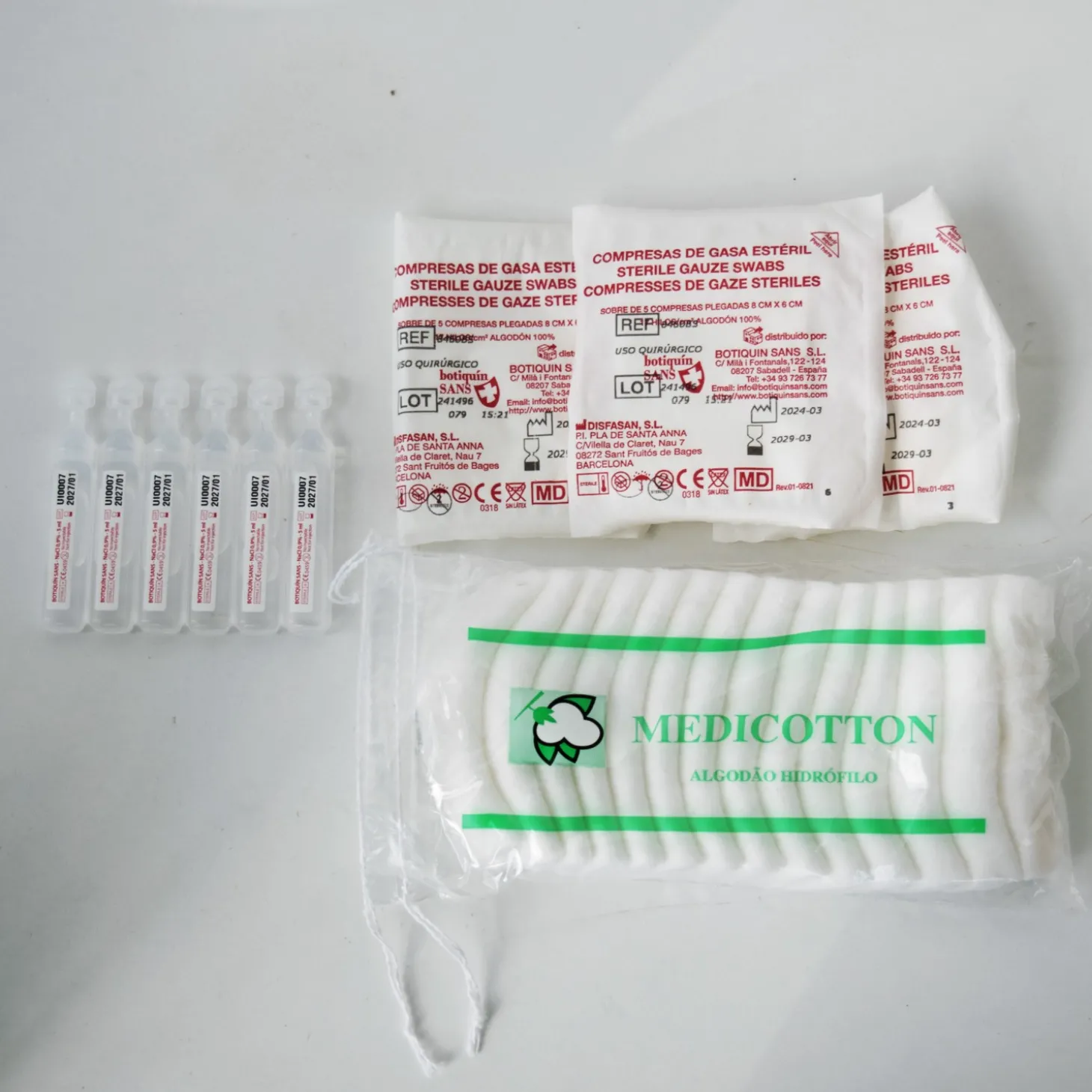 - 4 sobres de gasas estériles de 76x65mm (cada sobre lleva 5 unidades)