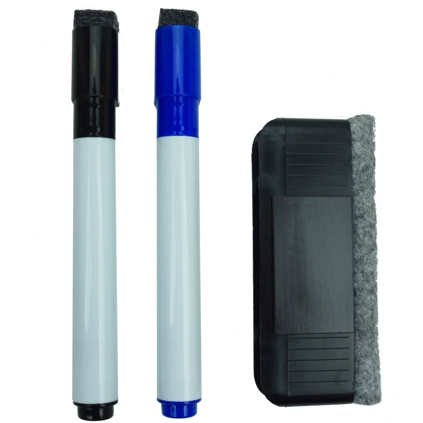 Pack compuesto por dos rotuladores tipo vileda y borrador para pizarra táctica magnética.