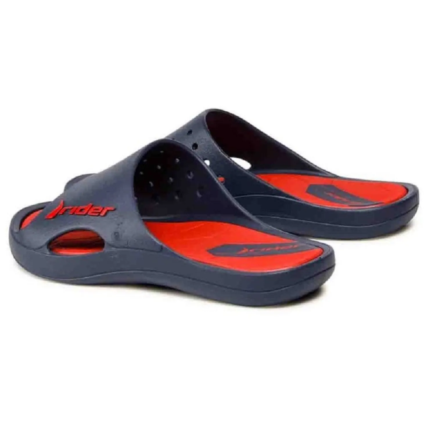 Las nuevas chanclas para hombre de Rider, las Bay XII Ad en color azul y rojo, son muy cómodas y perfectas para ir a la playa, a la piscina o para la ducha después de hacer ejercicio.