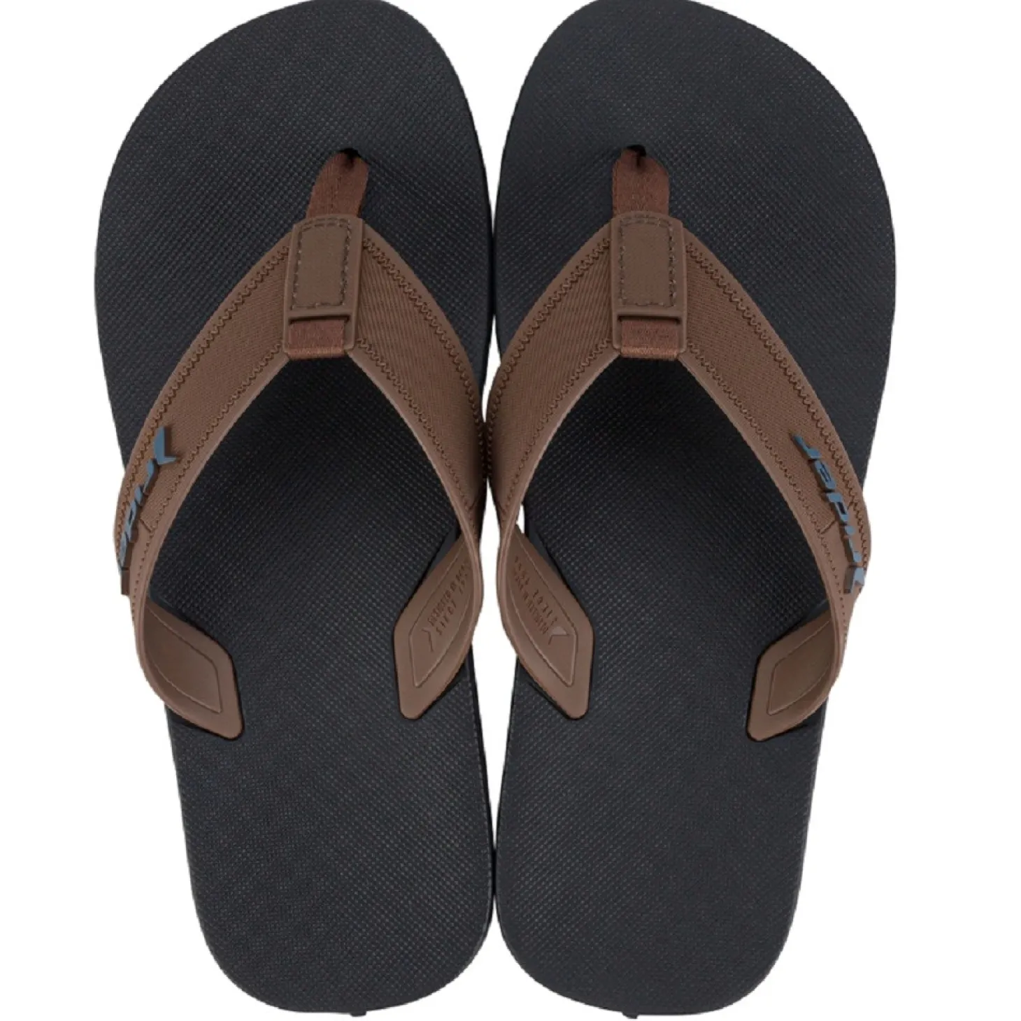 Estas chanclas de la marca Rider en color azul y marrón son perfectas para ir a la playa o simplemente para pasear durante los días calurosos del verano.