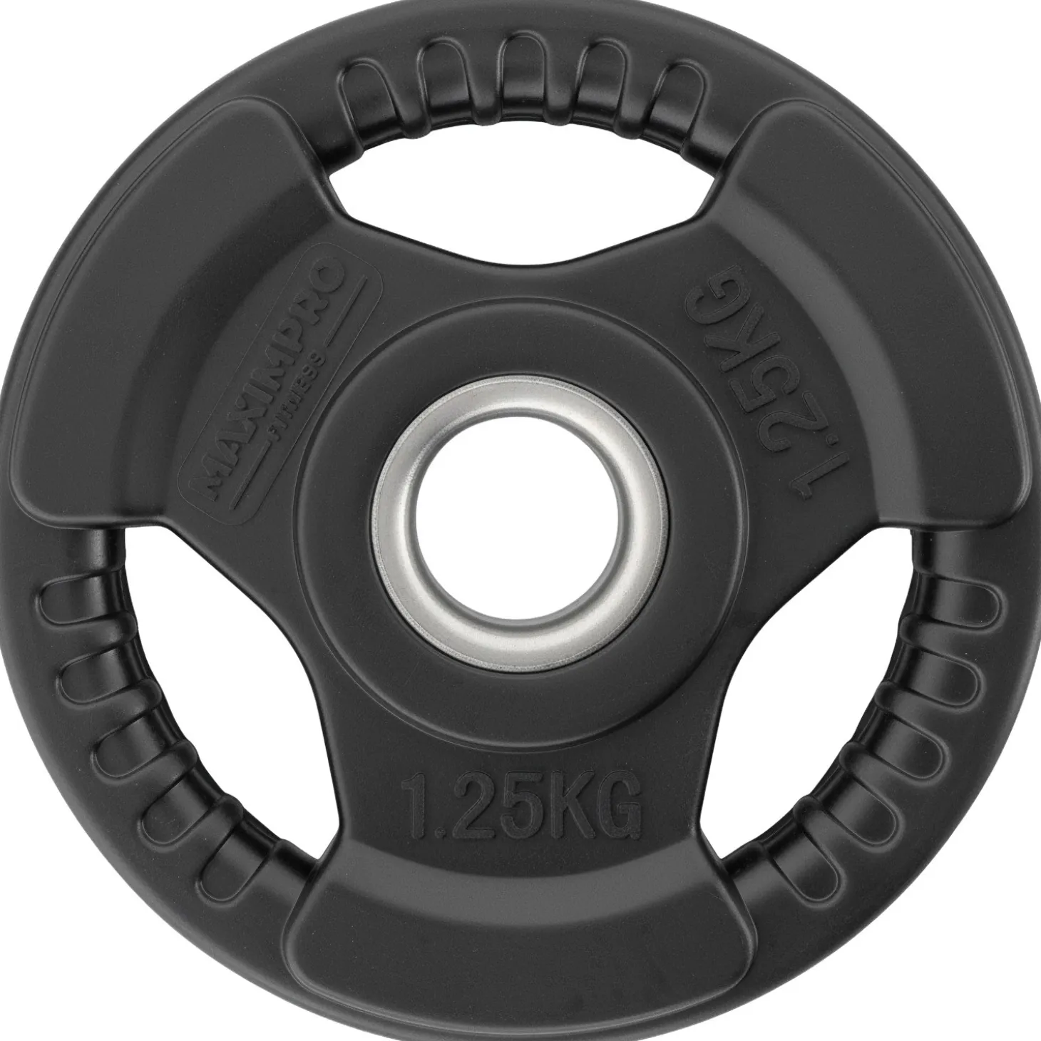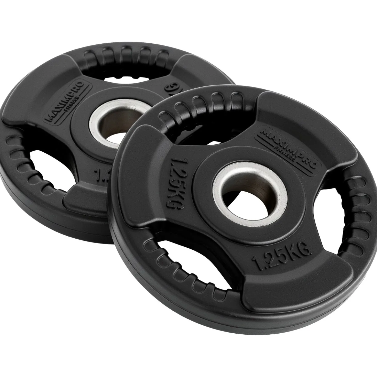 Los discos de caucho Maximpro Masos 1’25kg en pack de 2 unidades son perfectos para quienes comienzan o buscan incrementar cargas de manera gradual. Fabricados con núcleo de acero y recubrimiento de caucho de alta densidad, absorben impactos, reducen ruidos y protegen tanto las barras como el suelo. Su compatibilidad con barras de 30mm asegura un ajuste seguro y estable, mientras que el formato doble permite entrenamientos equilibrados y eficientes. Estos discos son ideales para press, curl, sentadillas o circuitos de fuerza-resistencia, combinando calidad, seguridad y estética profesional en negro discreto que encaja en cualquier entorno de entrenamiento.