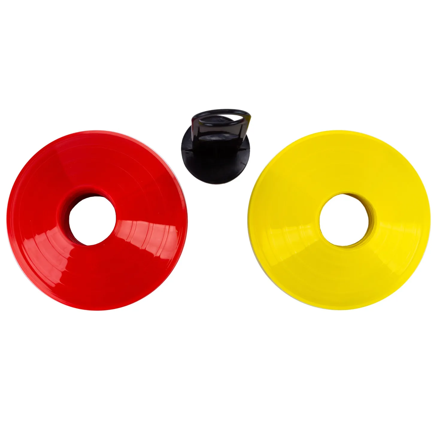 Set de 40 conos de entrenamiento flexibles, en color rojo y amarillo, con soporte para su transporte y organización, perfecto para practicar tus tácticas y estrategias.