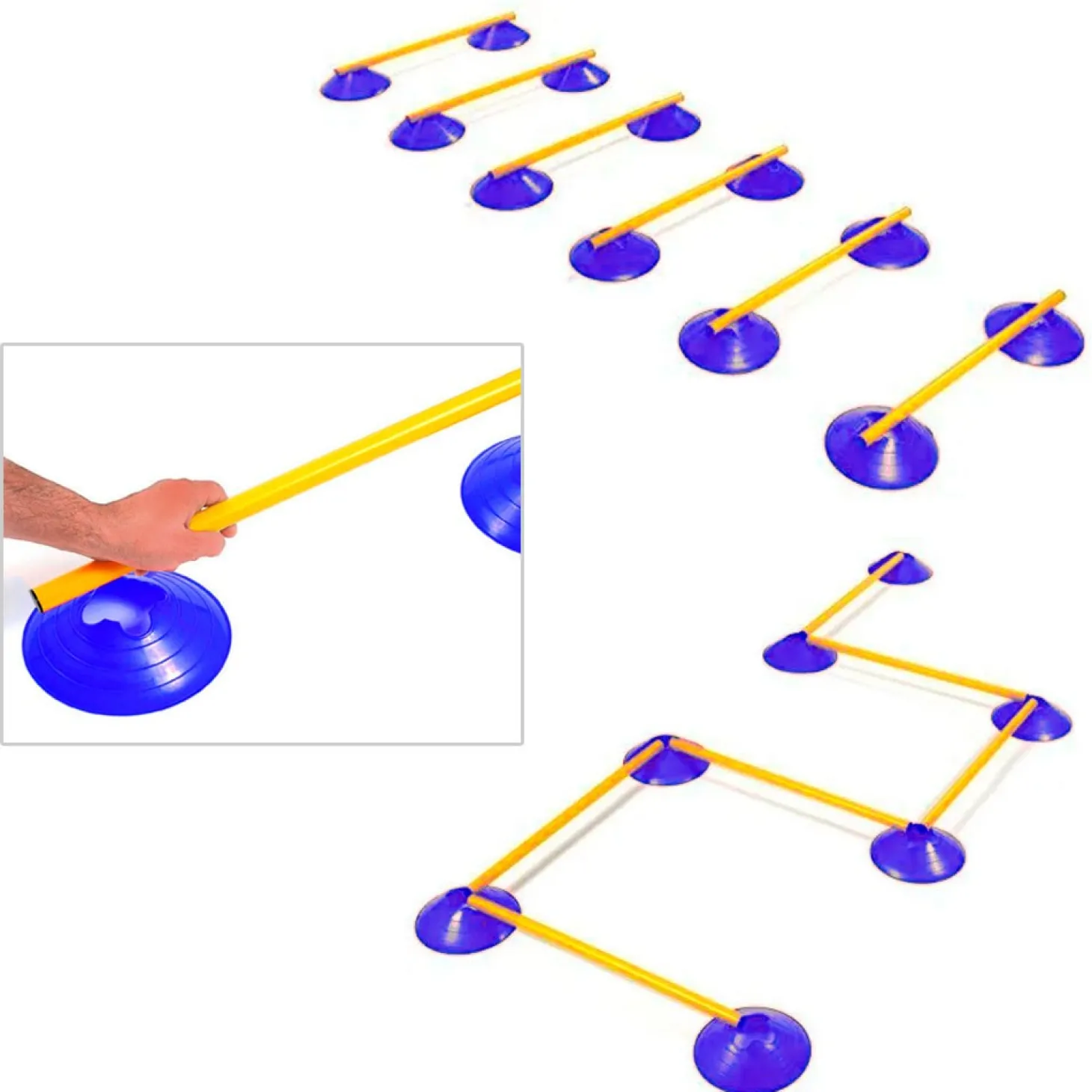 Crea las mejores rutinas de entrenamiento con este set de agilidad y velocidad compuesto por 20 conos flexibles y 10 picas.