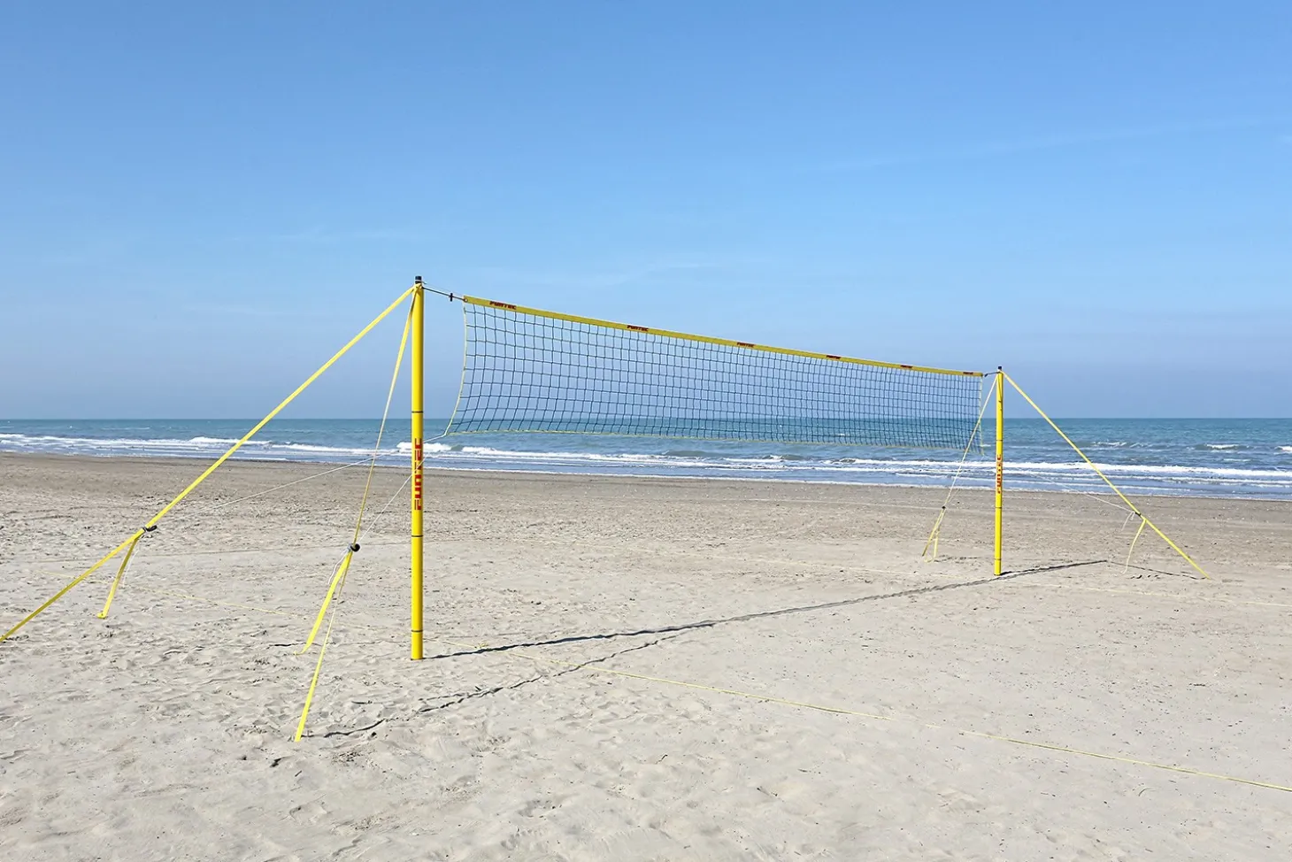 El Beach Masters Bundle está configurado con el sistema de tensión Funtec, en el que las líneas de tensión inferiores se enrutan directamente a los ganchos de tensión siendo los postes extremadamente estables.
