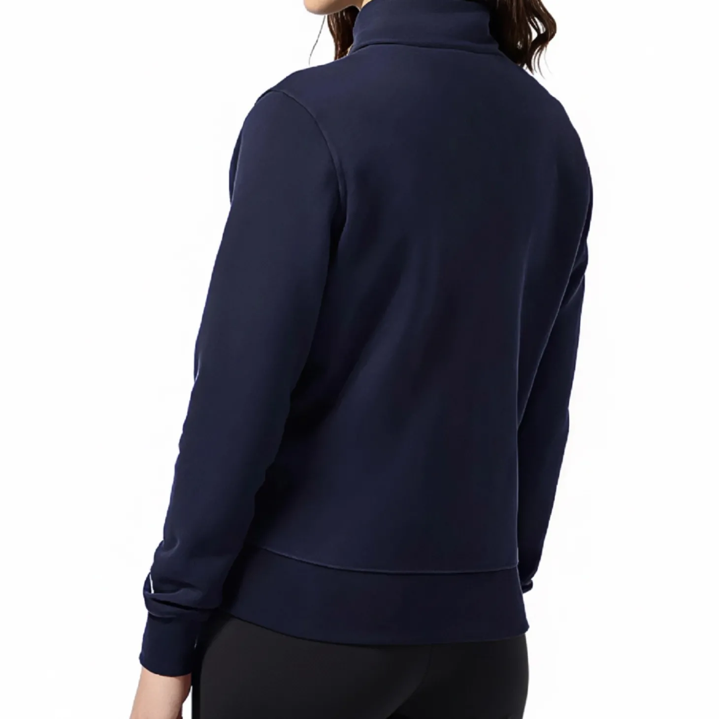 La sudadera está diseñada para acompañarte tanto en entrenamientos como en momentos de descanso. Su cierre completo permite ajustarla fácilmente al clima y a tu actividad: llévala abierta para mayor ventilación o ciérrala por completo para conservar el calor. El diseño limpio en color azul marino combina con prácticamente cualquier estilo, desde mallas deportivas hasta conjuntos urbanos relajados. Además, sus bolsillos laterales añaden funcionalidad, permitiéndote guardar pequeños objetos o mantener las manos calientes sin afectar la estética.