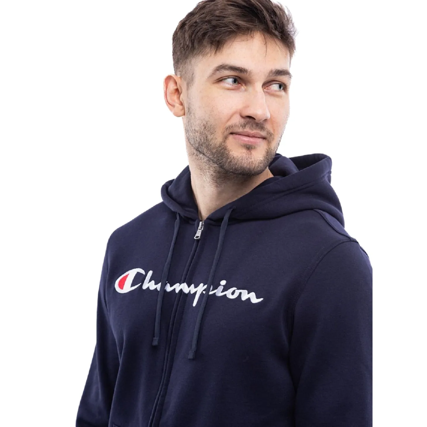 Sudadera en color azul marino de Champion para hombre con cremallera completa, ideal para entrenar o llevar en tu día a día. Comodidad y calidad en una sola prenda.
