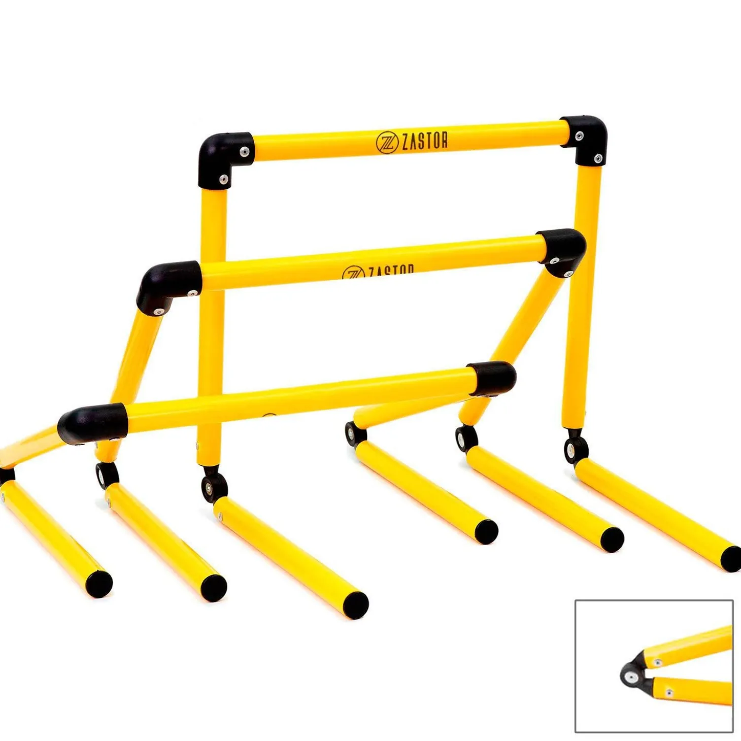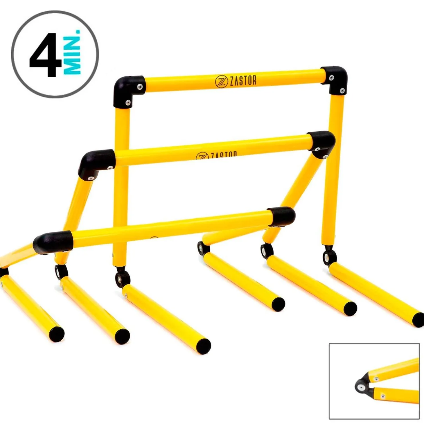 Vallas regulables en altura Zastor COLL. Mejora en tus entrenamientos gracias a estas vallas Zastor Coll, plegables y regulables en altura gracias a un sistema de engranaje de cuatro pasos, que permite su uso inmediato plegándolas o desplegándolas. Este sencillo mecanismo facilita que se puedan plegar y guardar cómodamente sin que ocupen mucho espacio.